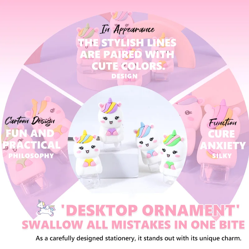 Cute Unicorn-Shaped Correction Tape Fun for School & Daily Use