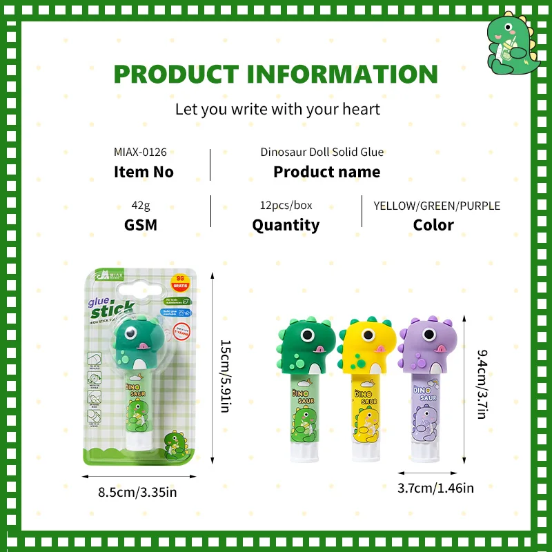 Dinosaur Shape Solid Glue Stick | Fun Design Adhesive for School Arts Crafts