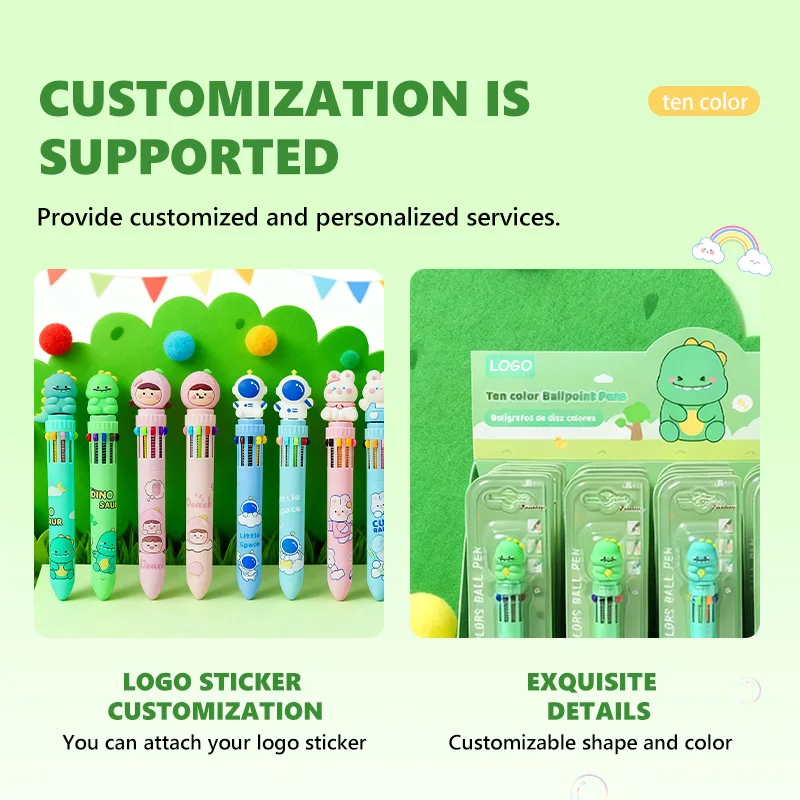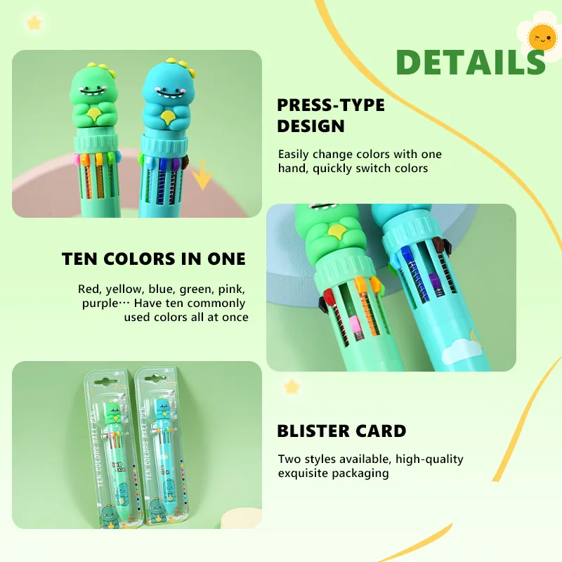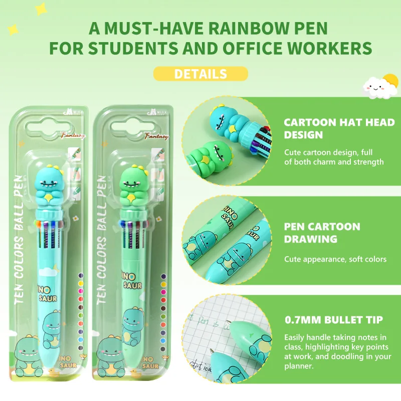 10-Color Dinosaur Design Pen | Multi-Functional Writing Tool for School Office