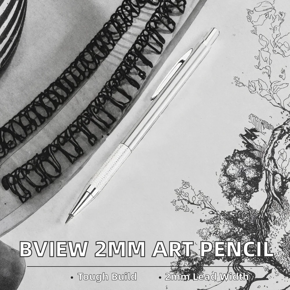 Bview Art Silver Body 2mm Thick Drafting Drawing Mechanical Pencil with HB Lead Hardness