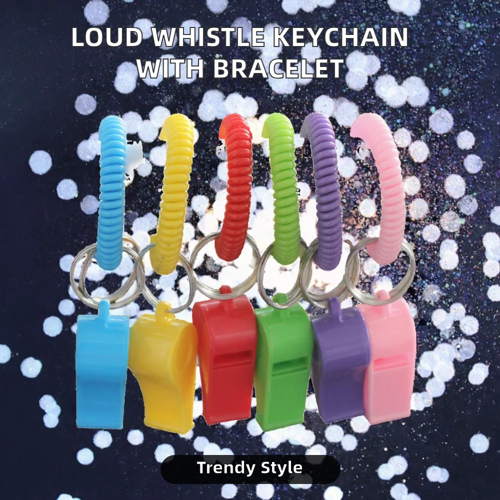 Light Sport Keychain with Loud Clear PVC Whistle Stretchable Coil Wrist Bracelet Survival Safety Keychains