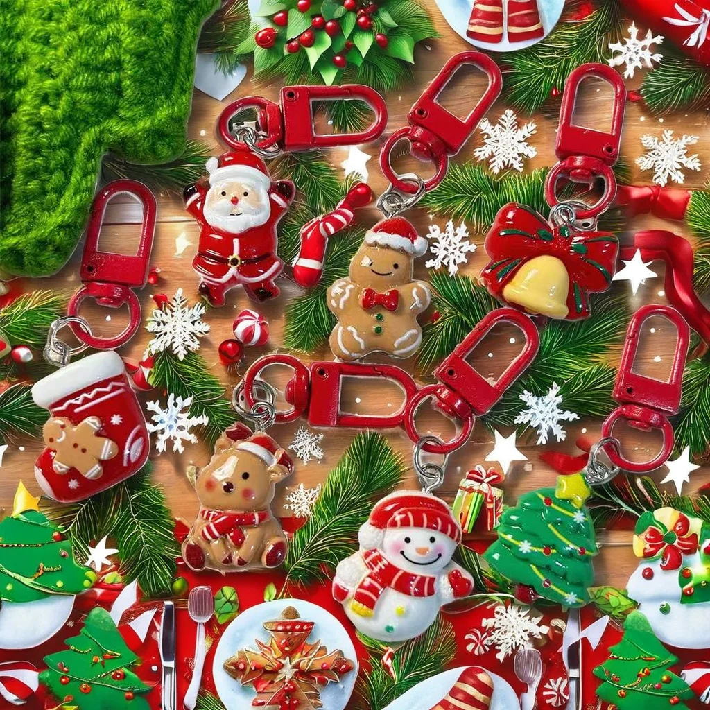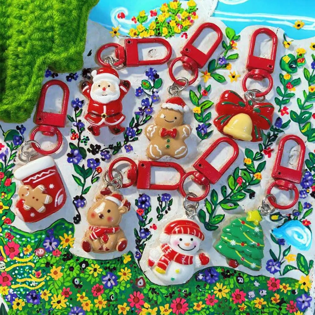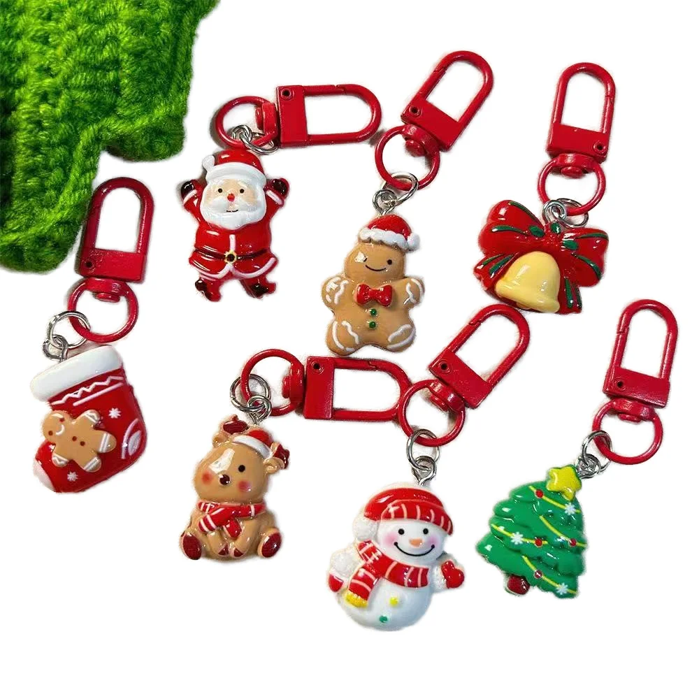 Q Version Santa Claus Elk Snowman Christmas UV Acrylic Keychain Funny Cute Cartoon Pendant for Schoolbags Best Friend Accessory