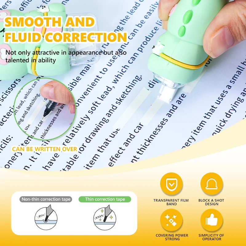 Cute Dinosaur Correction Tape, Kids-Friendly Smooth Cover Tape for School Office Writing Supplies