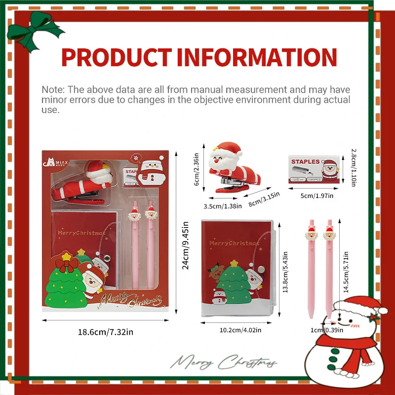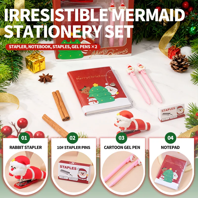 Santa Themed Stapler Stationery Kit, Durable Practical Holiday Supplies for Daily Office & School Use