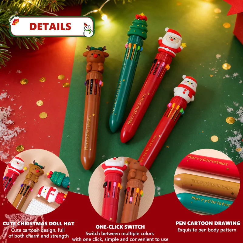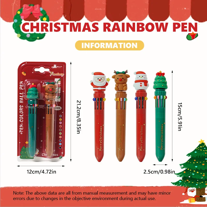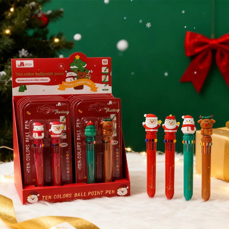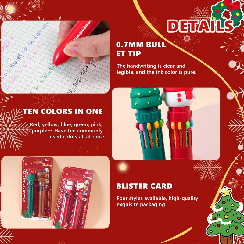 Carded 2-Piece 10-Color Festive Ball Pen - Kid-Friendly School Stationery