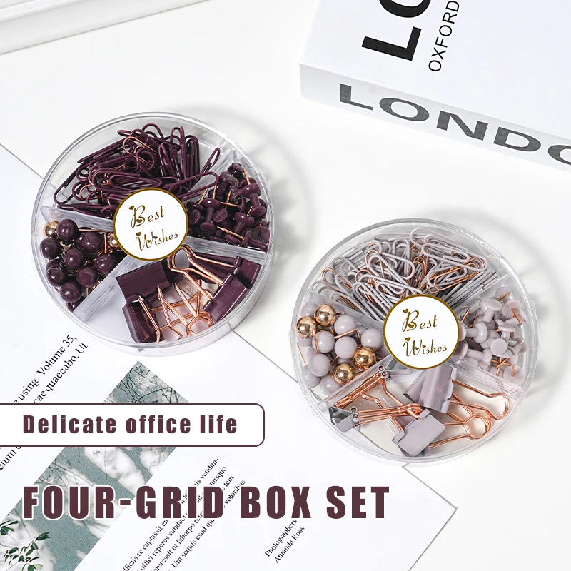 Custom Sticker 4 in 1 Set Rose Gold Electroplating Transparent Box Push Pin Pushpin File Fixed Stationery