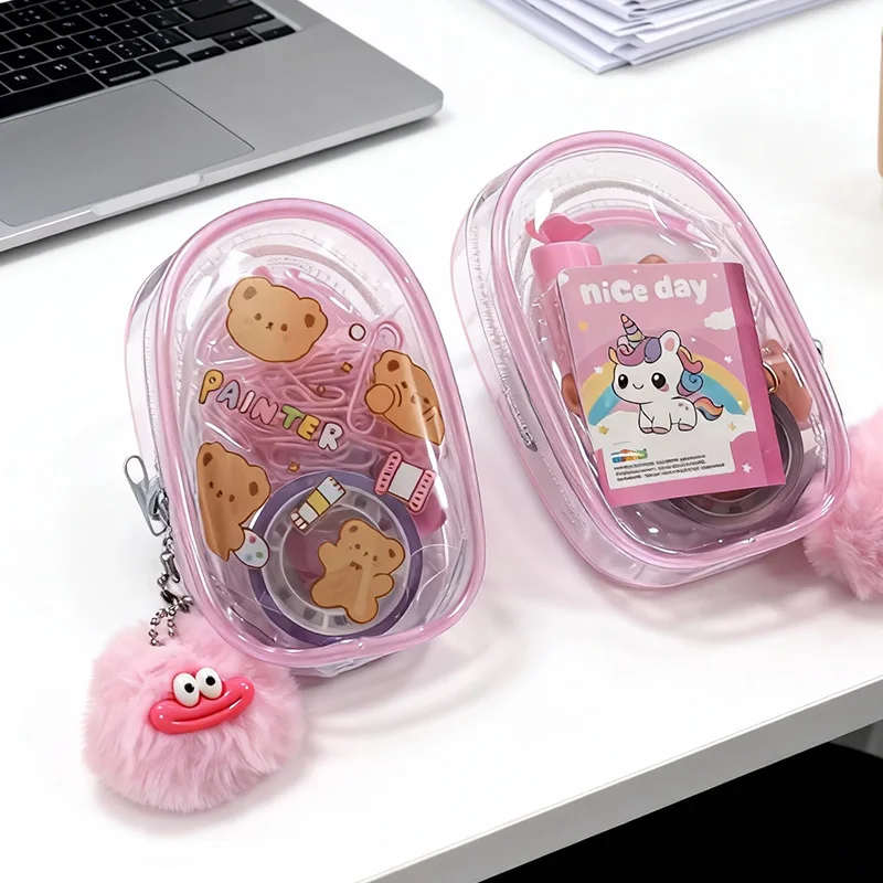 Trendy Transparent Pouch Stationery Set - Cute Bear & Unicorn Design, Portable School Supplies Kit for Kids Party Favors