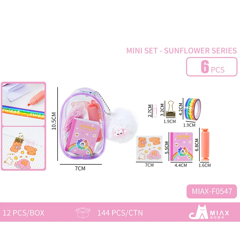 Affordable Bear Themed Stationery Kit - Transparent Storage Pouch + Notebook + Paper Clips, Portable Kawaii School Supplies