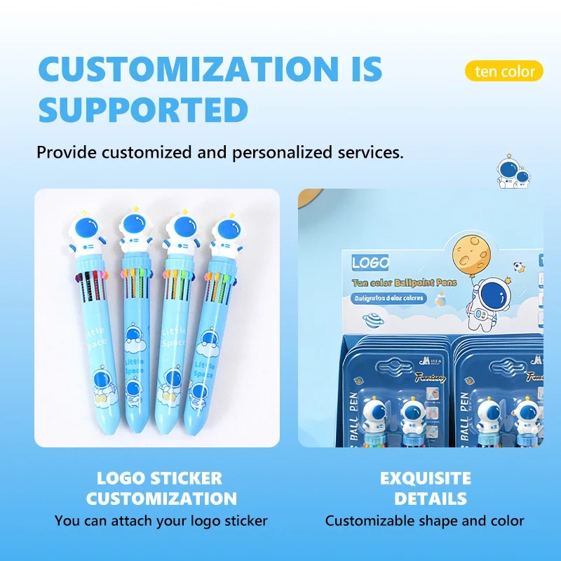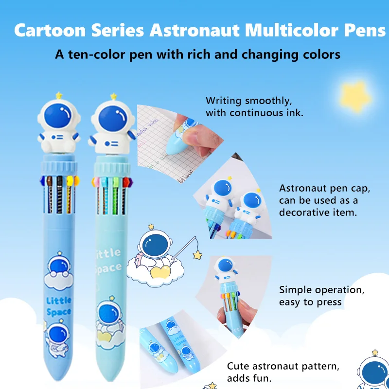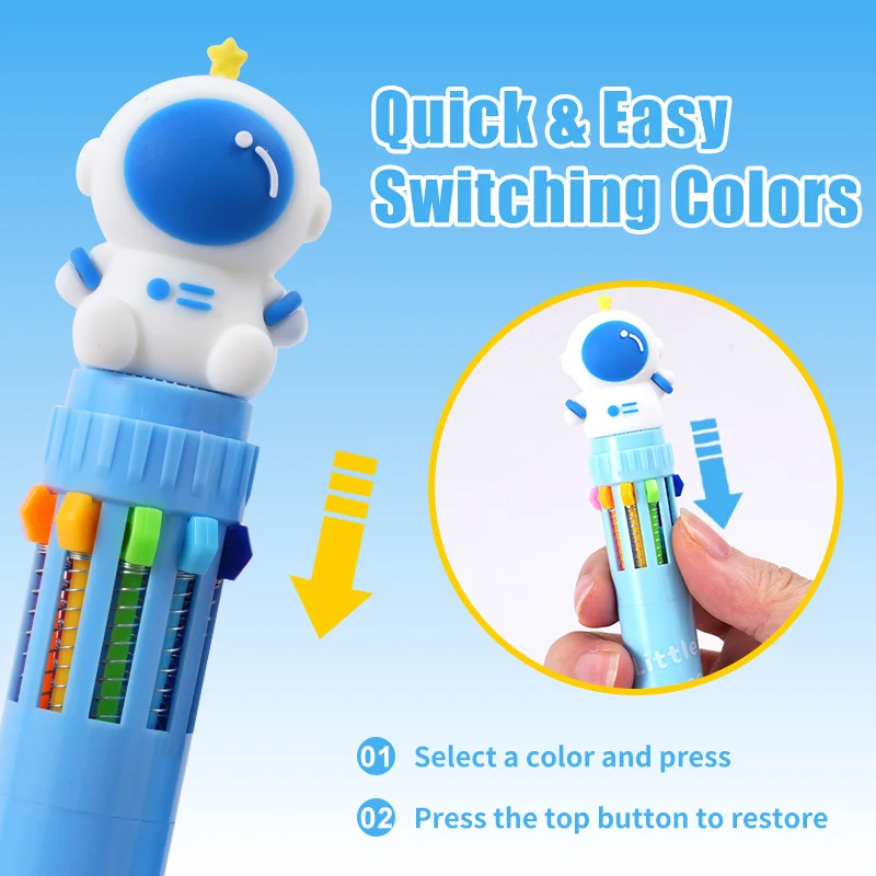 2 Pcs Blister Card 10-Color Retractable Pen Astronaut Style Multicolor Pen for Students Professionals