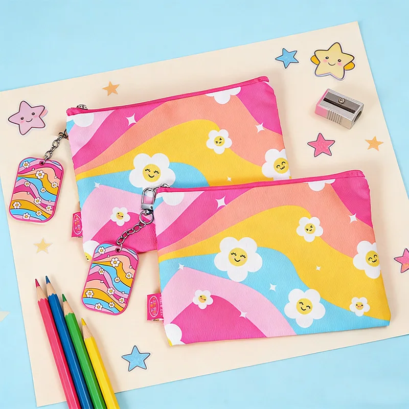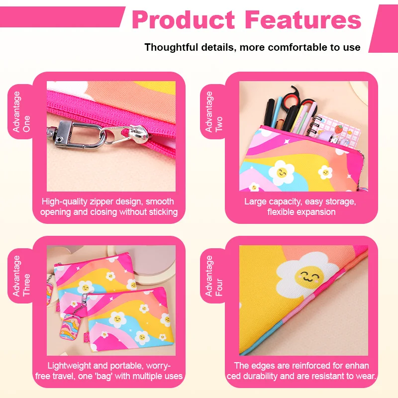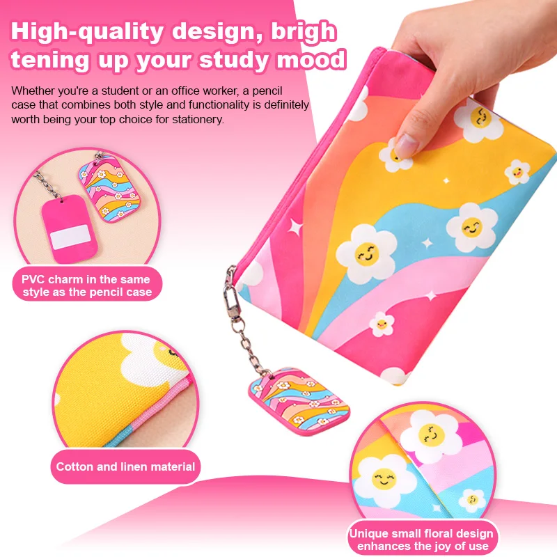 Sunflower Print Square Pencil Pouch Stationery Bag for School Supplies Storage