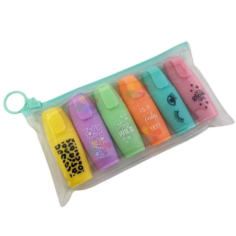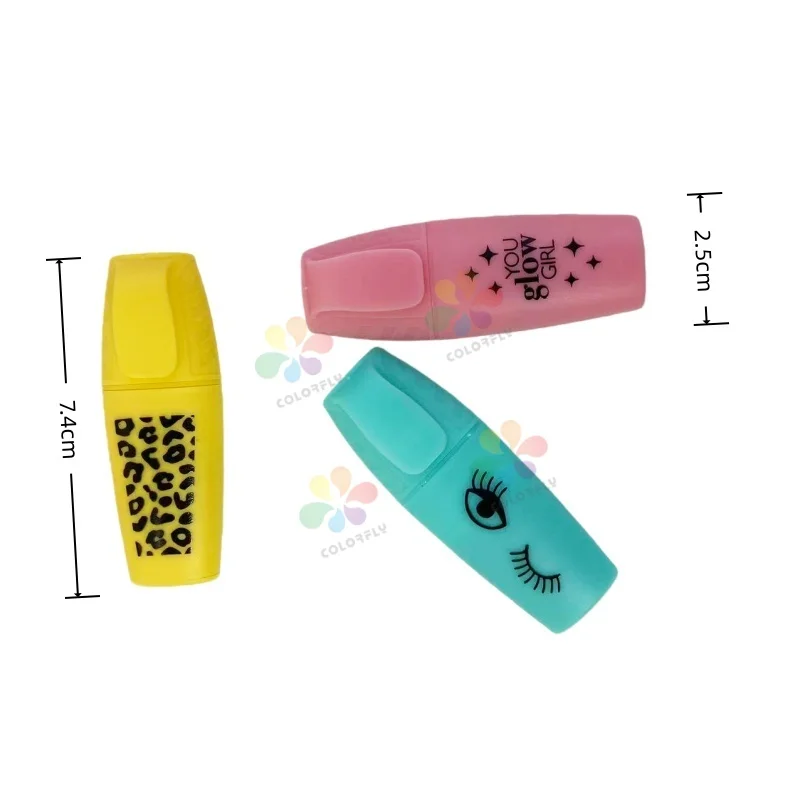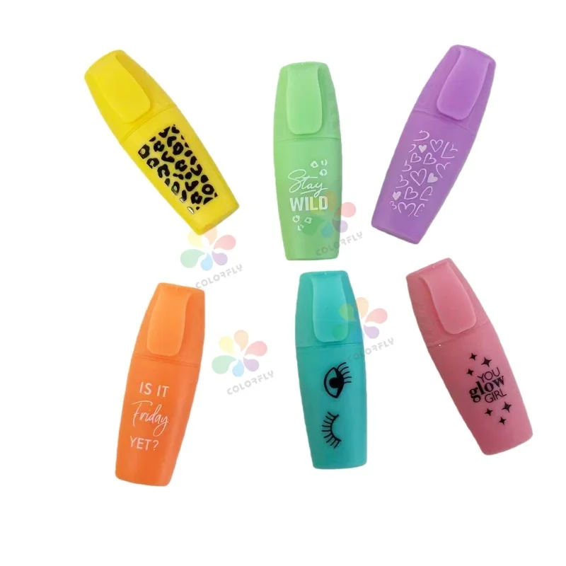 Factory Wholesale Multi-color Highlighter Pen Flat-tip with Water-based Ink Cute Design