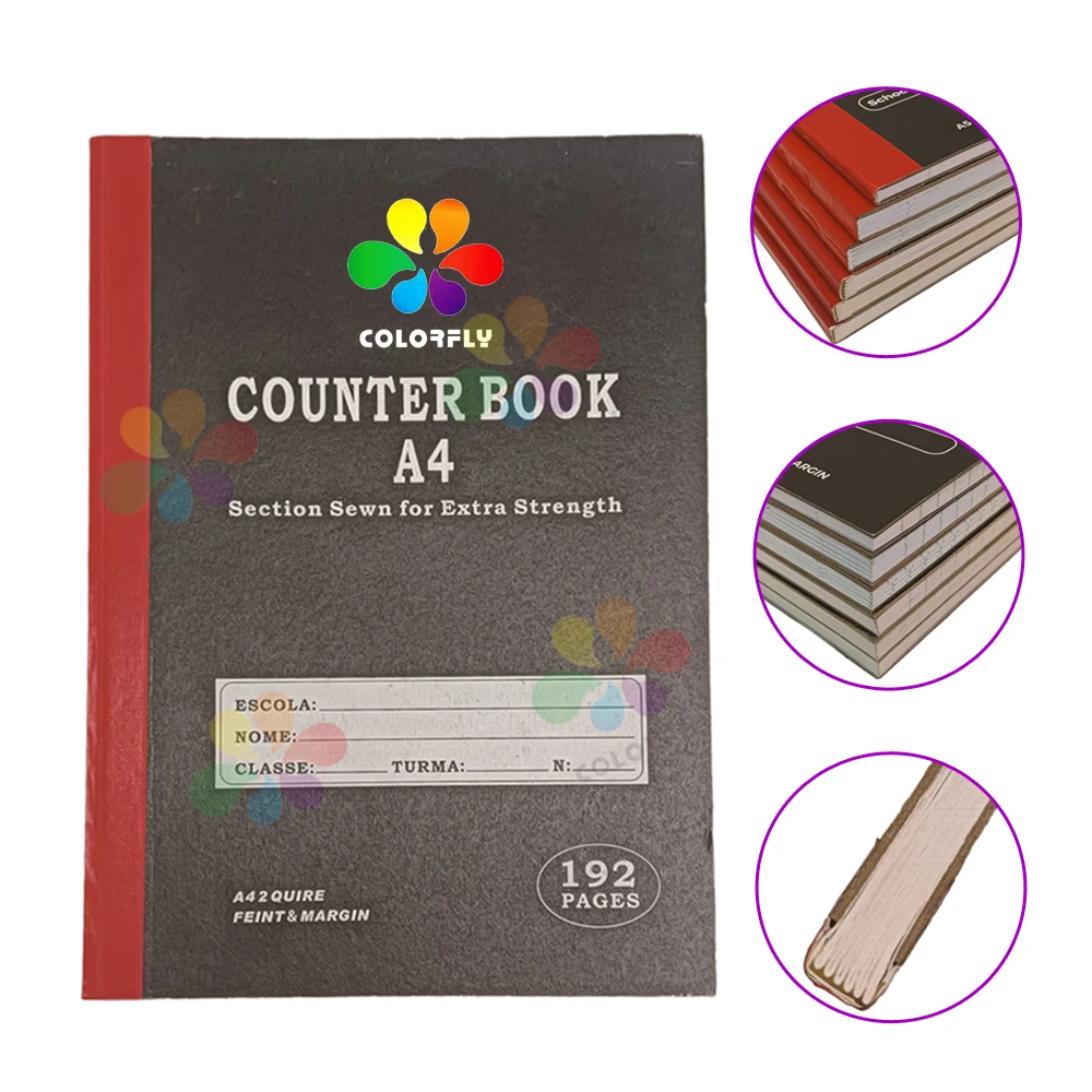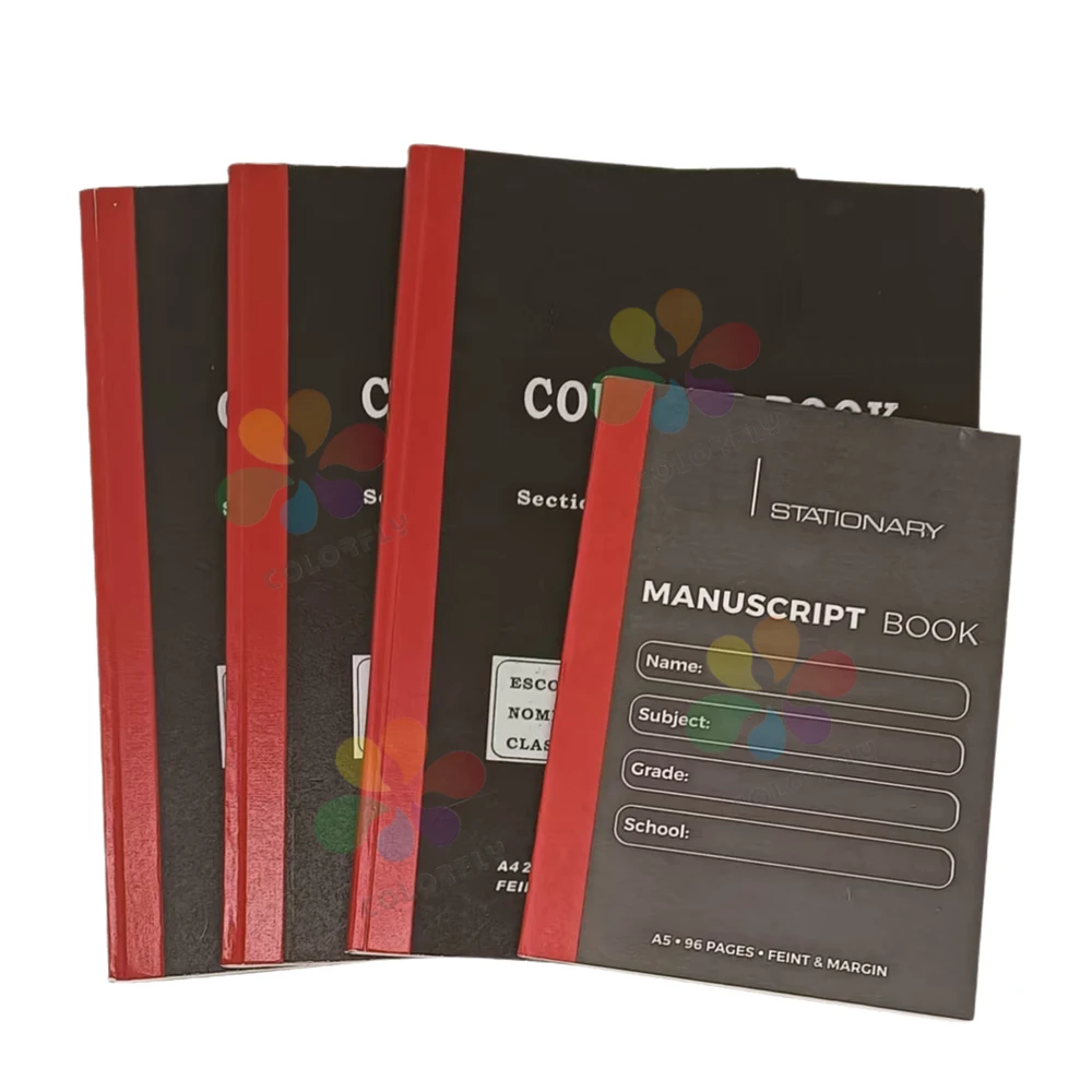 Black A4 Hard Cover Notebook Wholesale Custom Design 96 Sheets Counter Notebook for African Market School Supplies