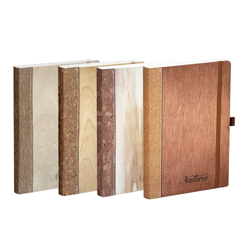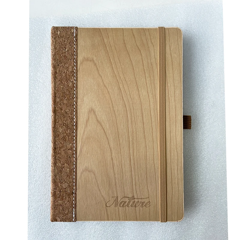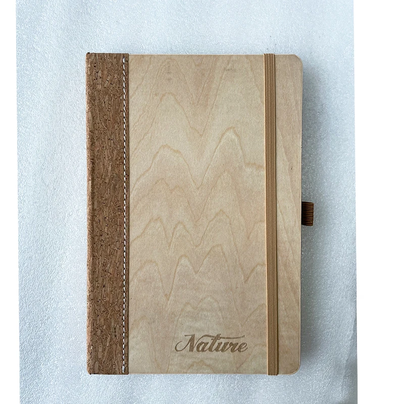 A5 Eco-friendly Natural Material Notebook Wood Joint Cork Hardcover Journal Diary Notebook with Band