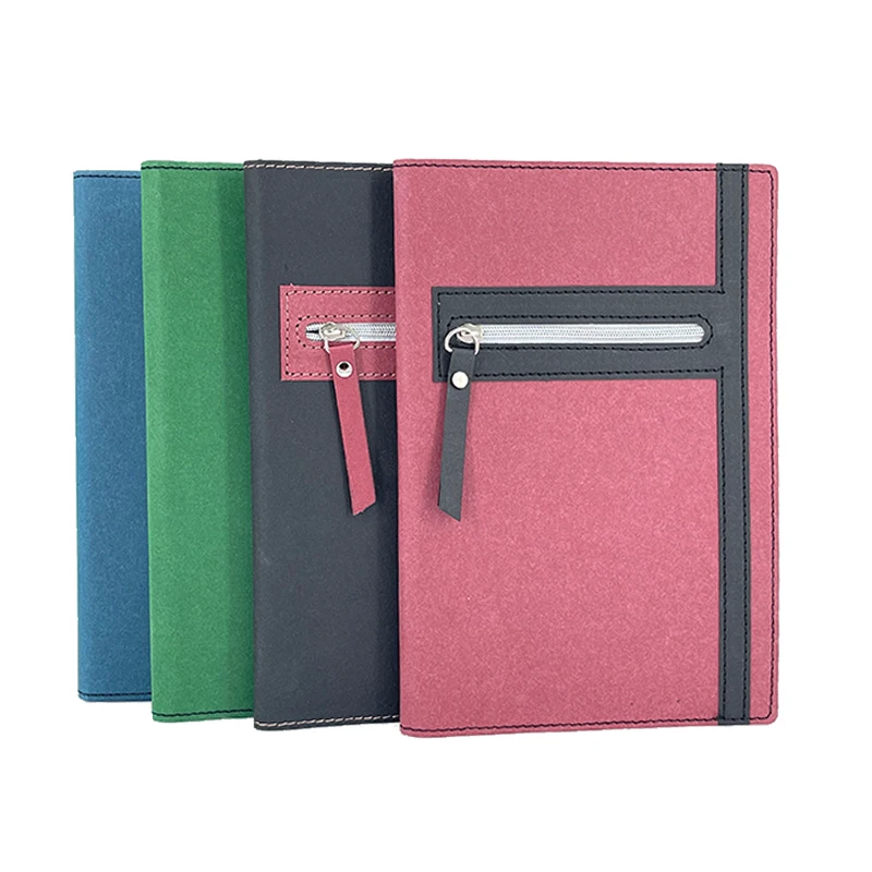 Factory Custom Softcover Color Notebook Kraft Paper Notebook with Zipper Pocket