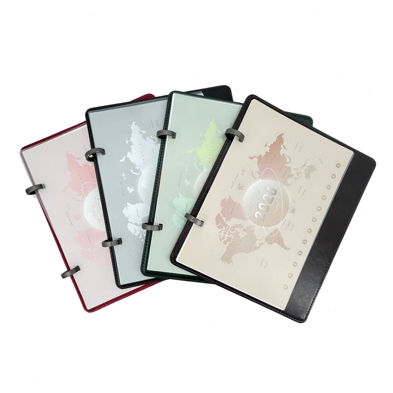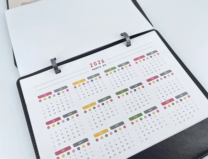 High Quality Stainless Steel Desk Calendar Agenda Planner Custom LOGO Mini Size PU Leather Business Gift Promotion