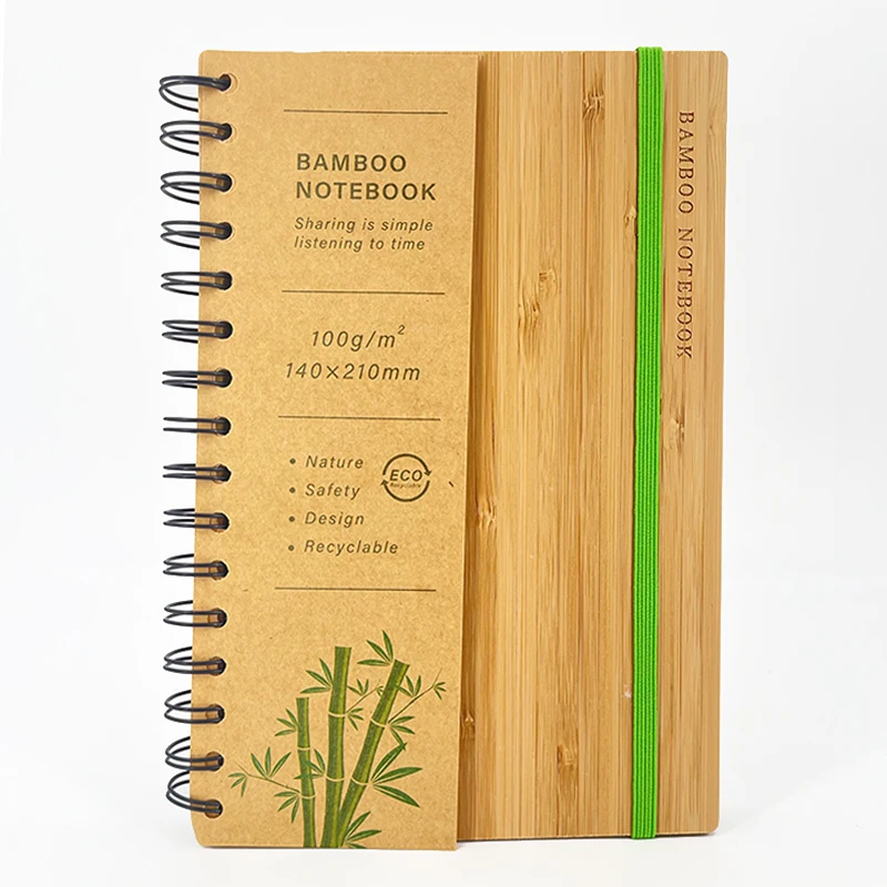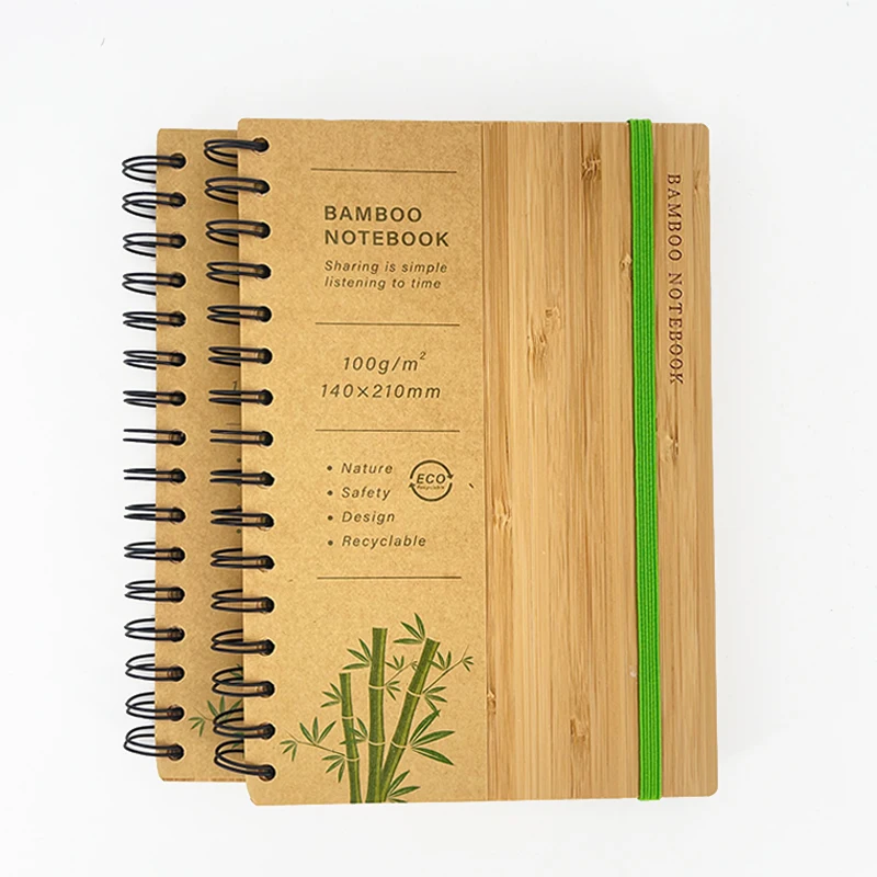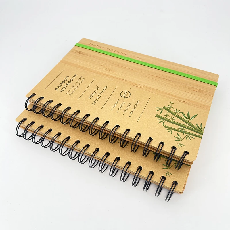 Custom A5 Bamboo Notebooks with Laser Logo Eco-Friendly Recycled Paper Printed Style Wire-O Binding Journal Planner for Gift