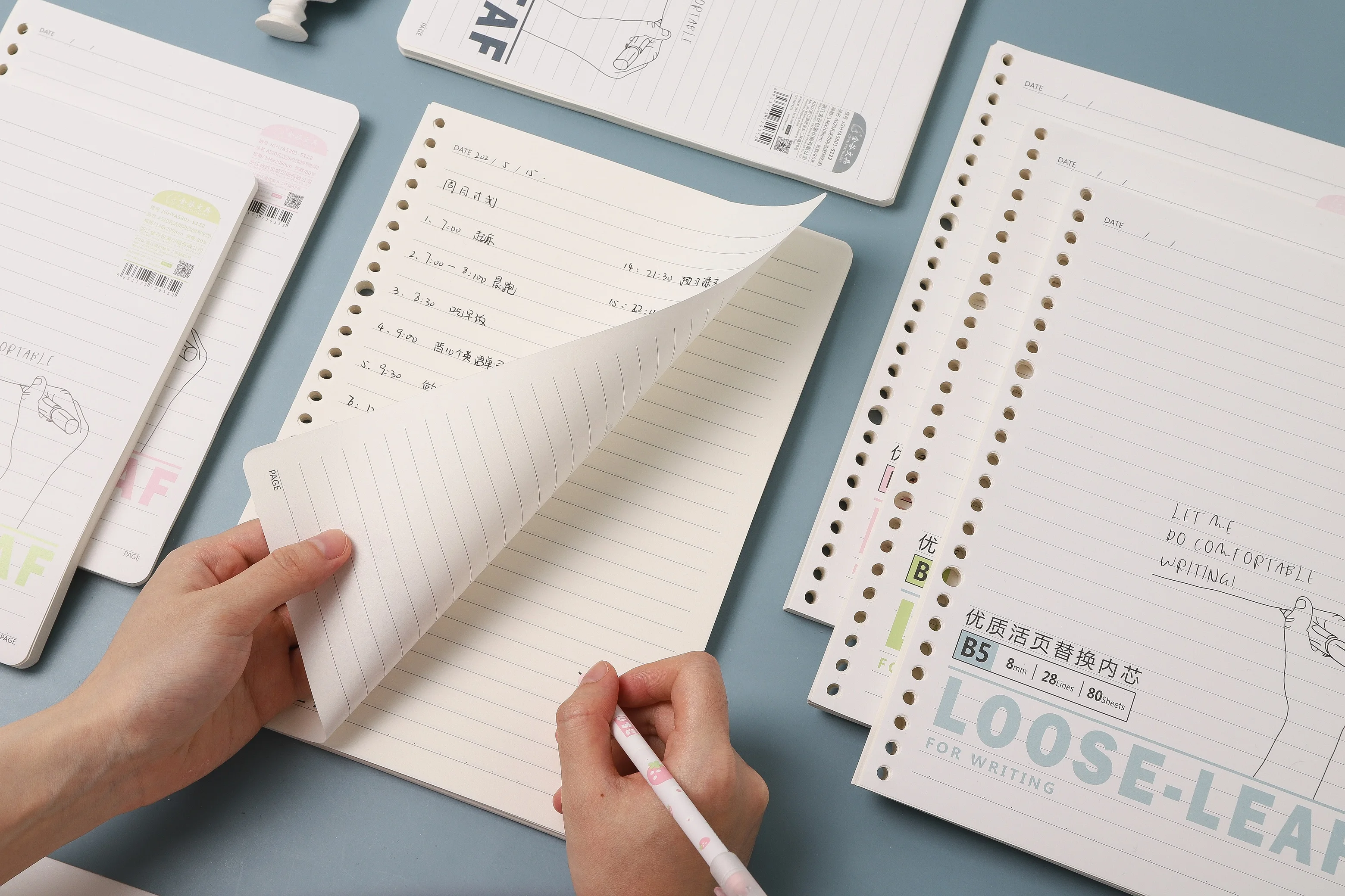 A4 Printed Planner Inserts 30 Holes Loose-Leaf Bound Filler Paper Pages for School Use Notebook Refills