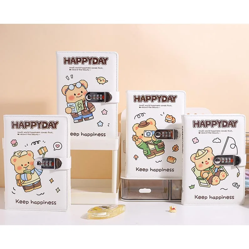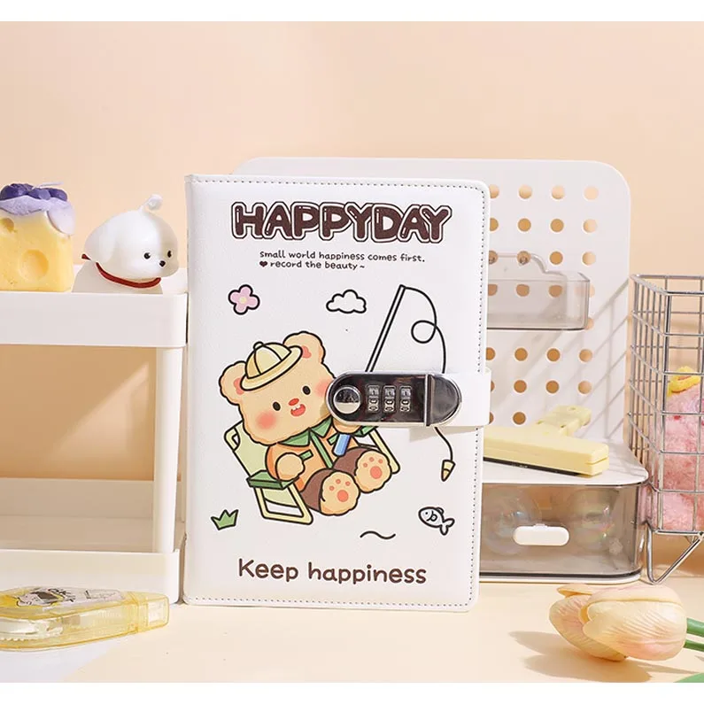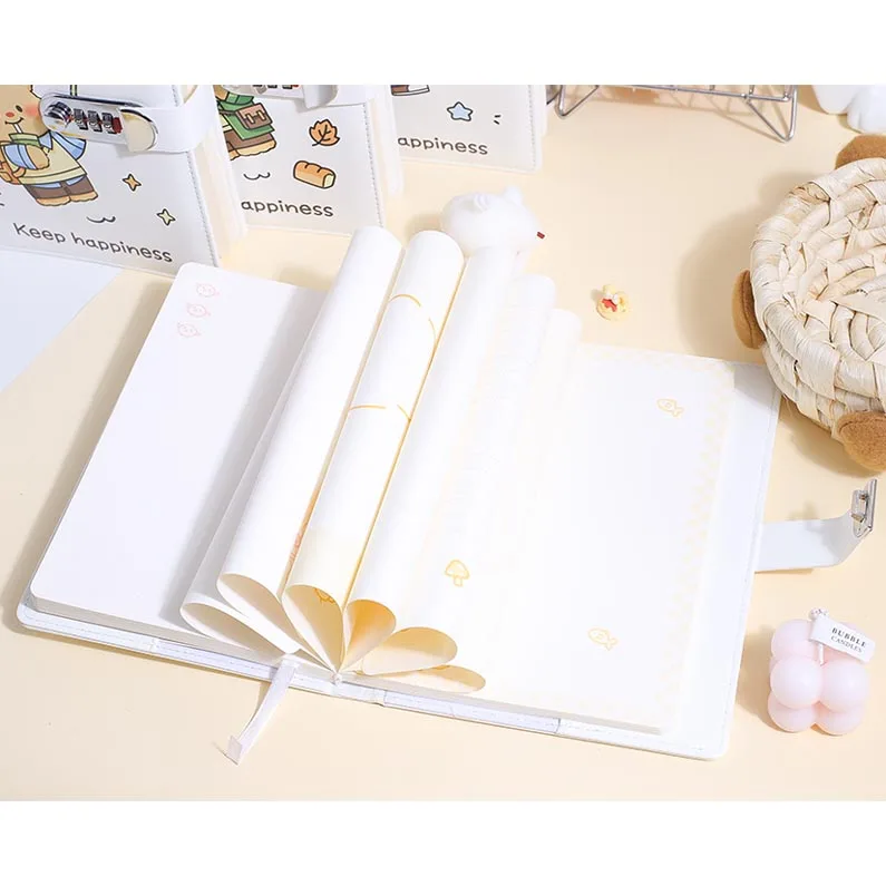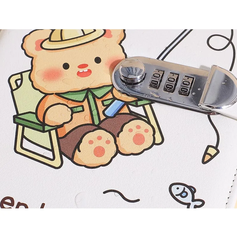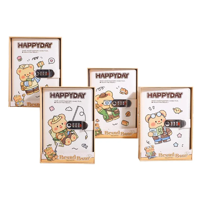 2026 Lovely A5 Cute Color Cartoon Bread Bear Journal Diary Pu Notebook for Gifts with Lock