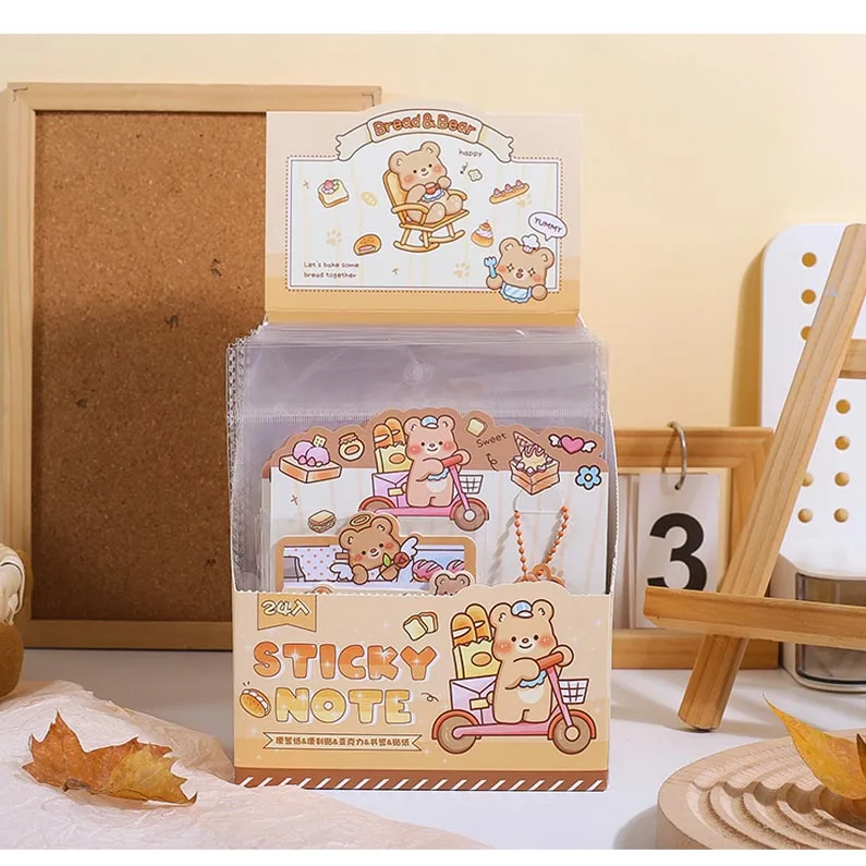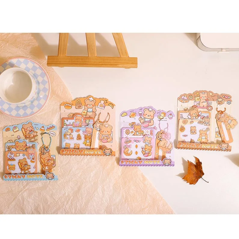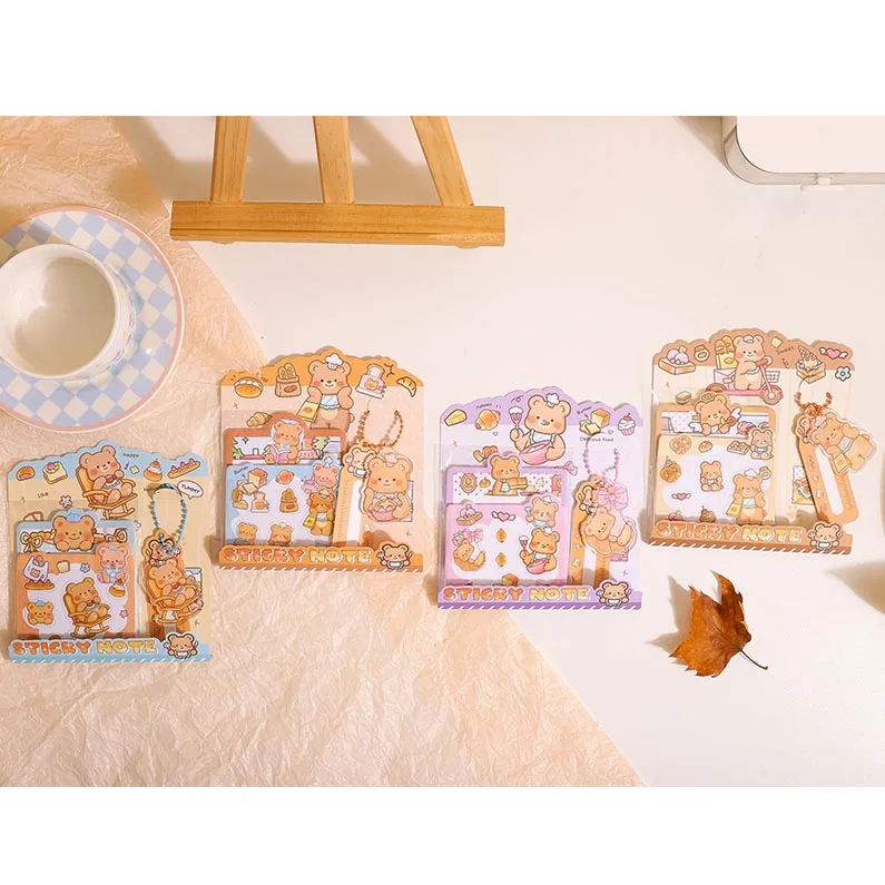 2026 small Custom Cute bread bear cartoon Mini bookmark sticky note for students and gift