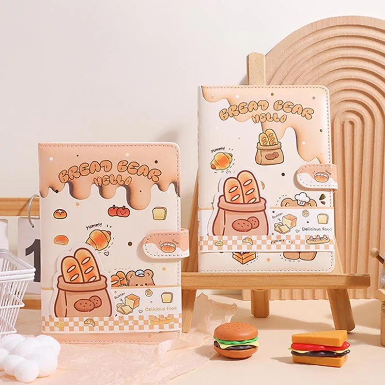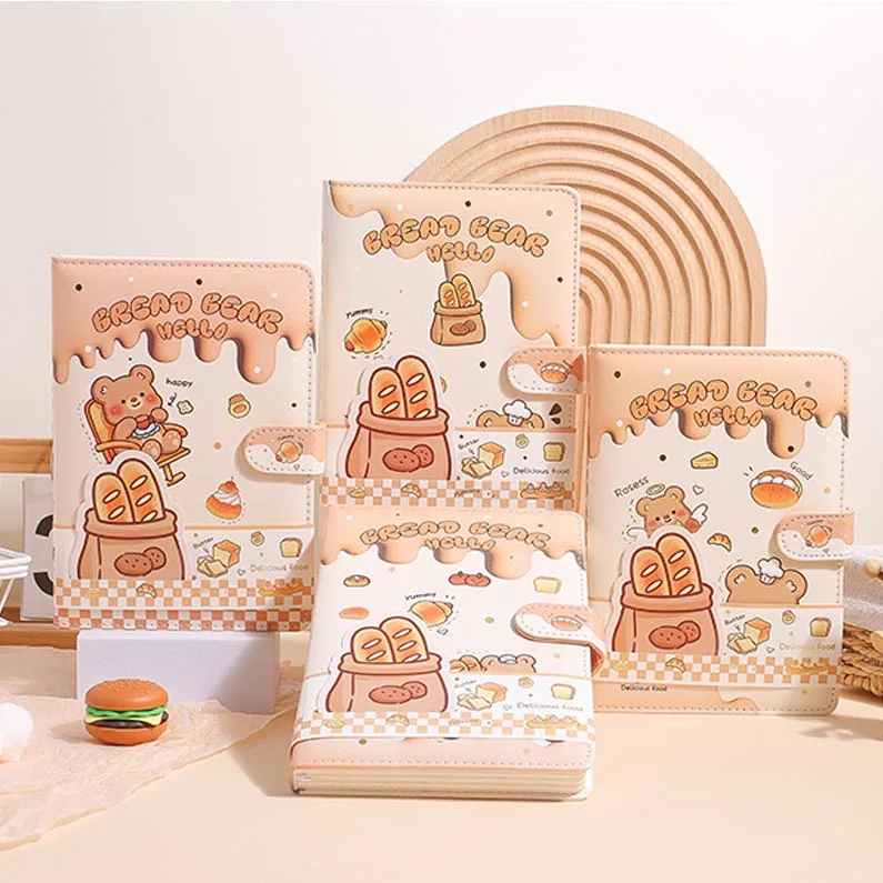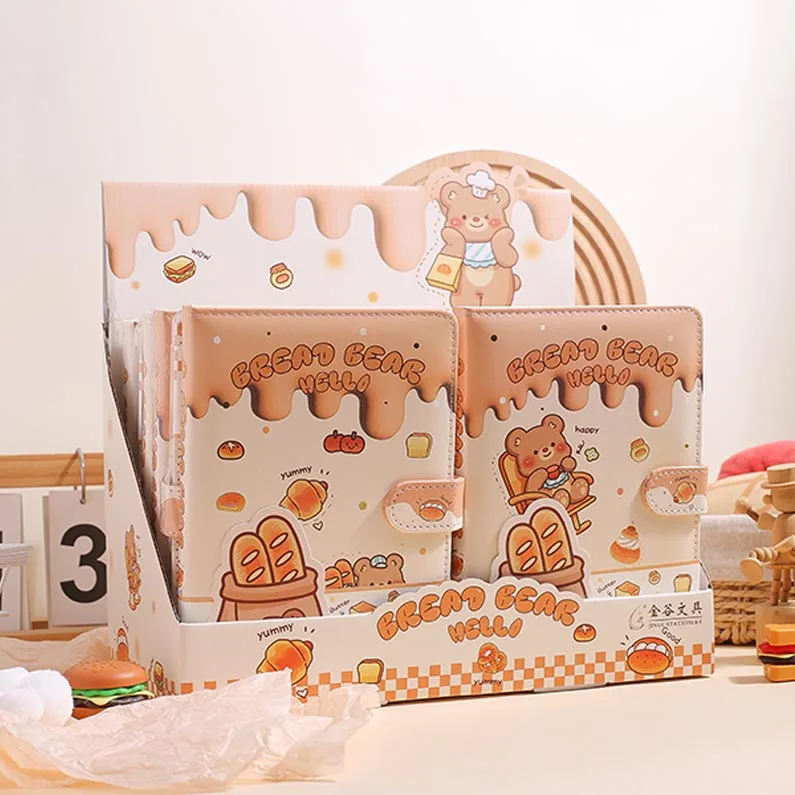 2026 Custom A5 Cute Color Cartoon Bread Bear Journal Diary PU Notebook with Magnetic Buckle