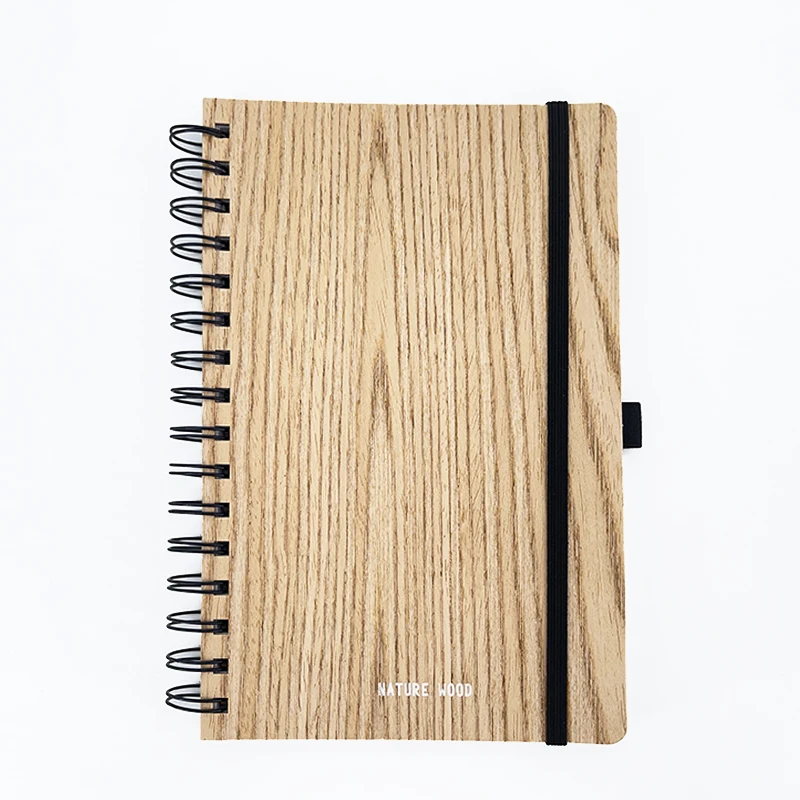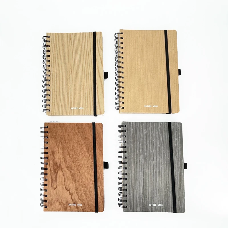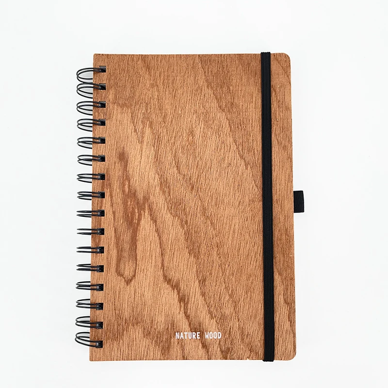 Wholesale 2026 Custom Eco-friendly A5 Wood Paper Spiral Notebook Daily Planner Notebook for Gift