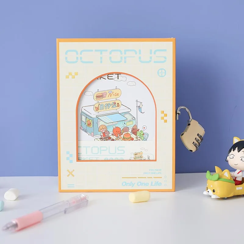Octopus Market Factory Cute Notebook Souvenir Gift Box Travel Journal Diary with Lock for Girl