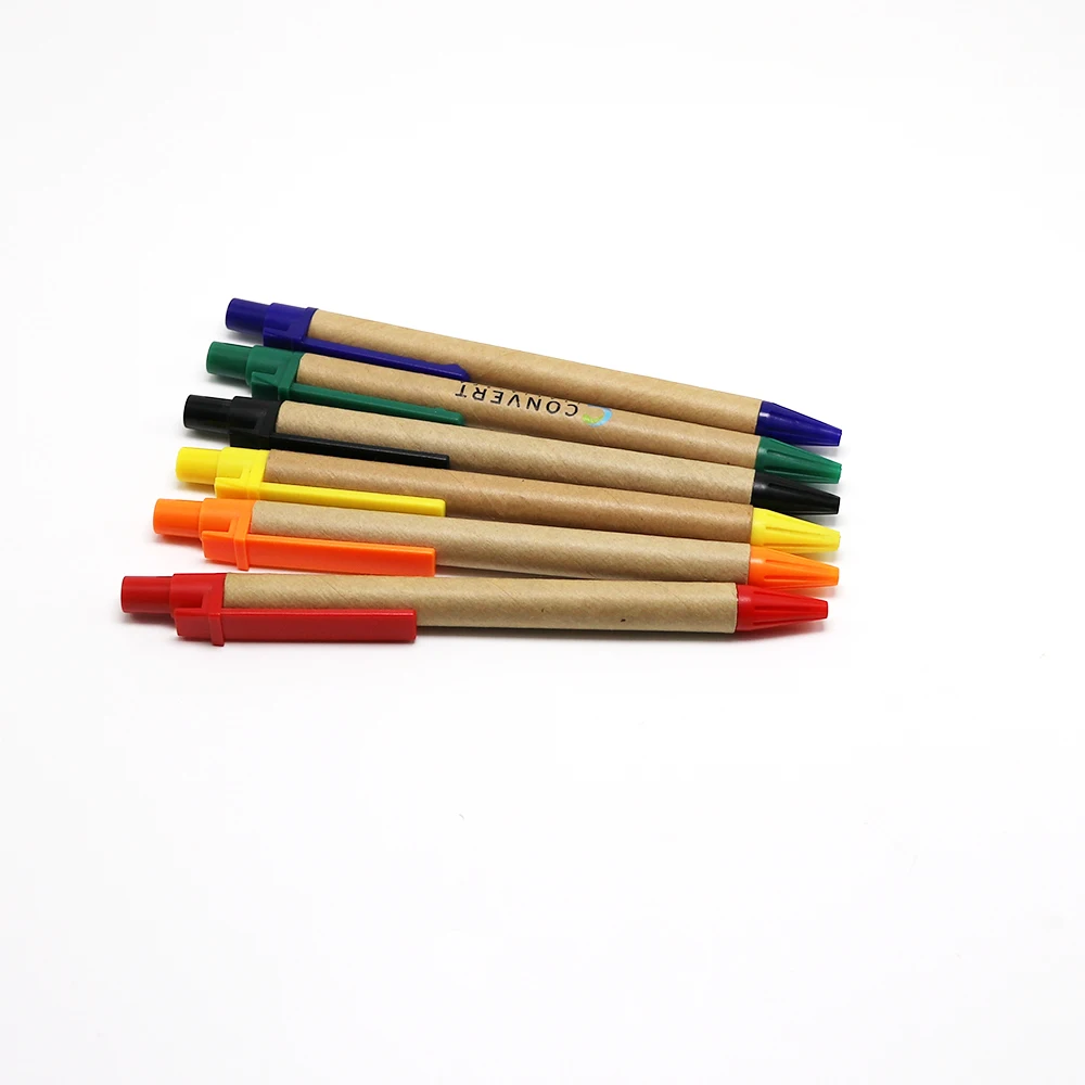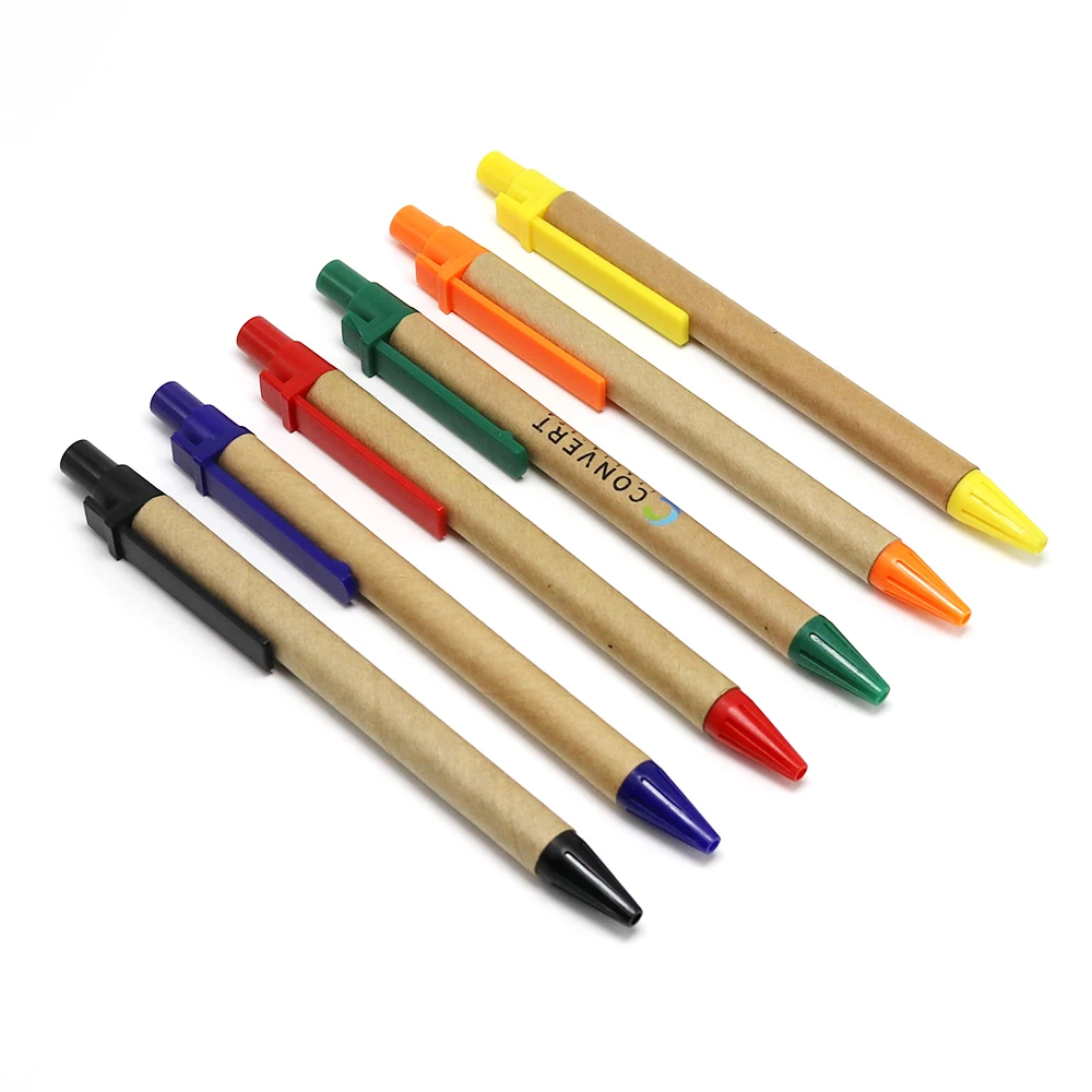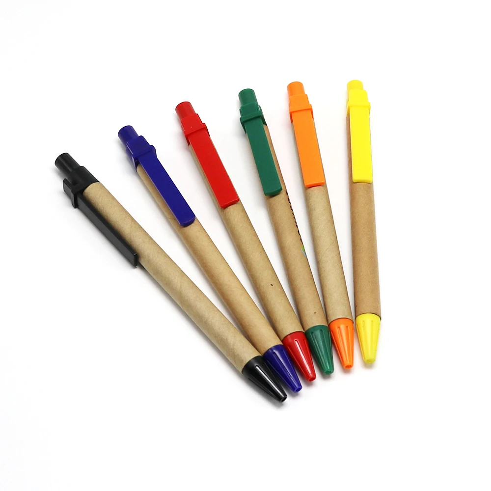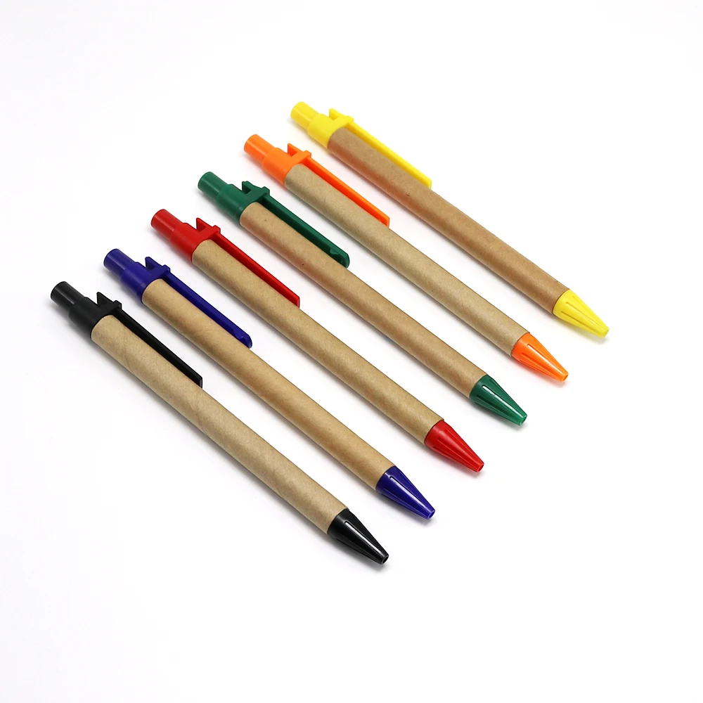 New Arrival Promotion Eco Paper Roll Out Multi Colour Ballpen Ballpoint Pen With Plastic Clip