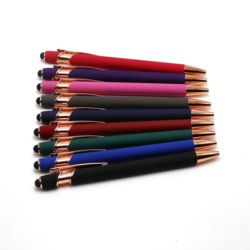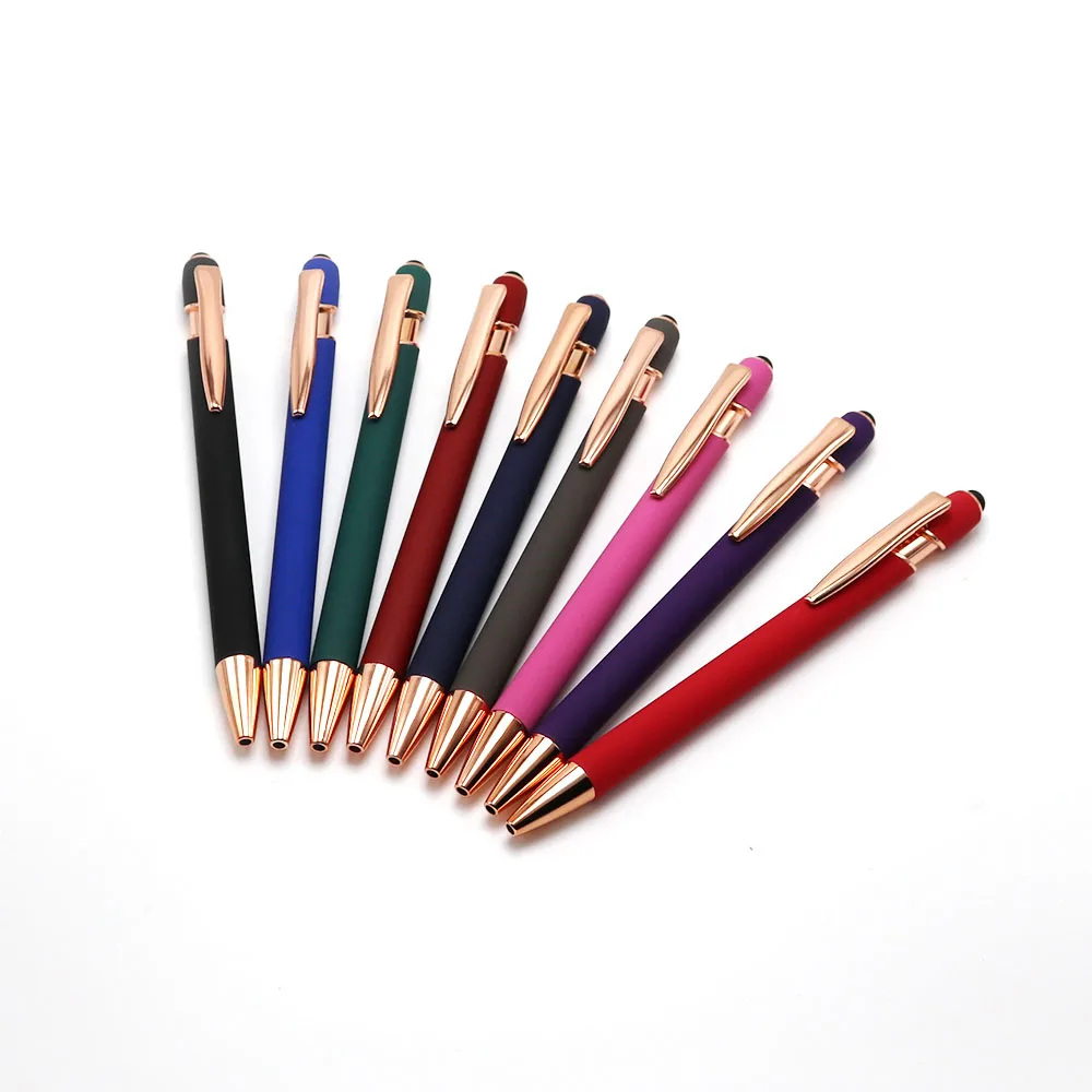 Wholesale New Soft Touch Screen Stylus Pen With Custom Logo Ballpen Soft Finishing Luxury Rose Gold Metal Aluminum Ballpoint Pen