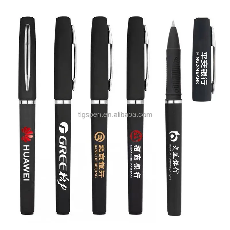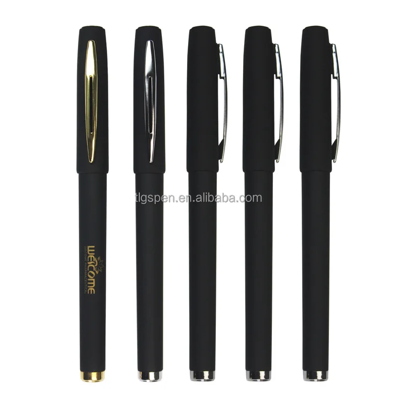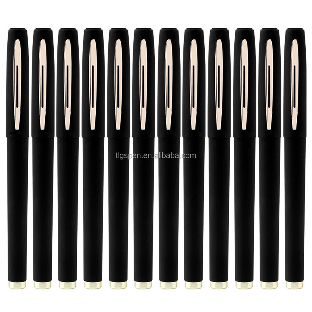 Stationery Promotion Custom Black Rubber Coated Plastic Gel Ink Pens With Metal Clip Wholesales Soft Touch Fine Tip Sign Pen