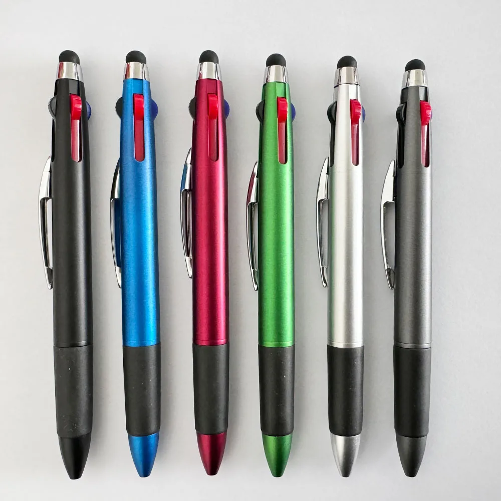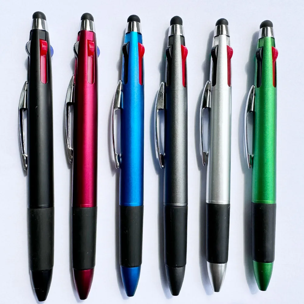 Wholesale Custom Hot Sell Promotion 4 in 1 Stylus Pen Multi Colors Ball Pen With Red Blue Black Green Ink