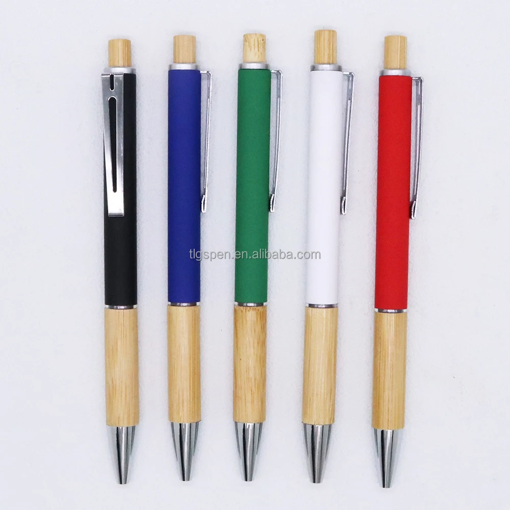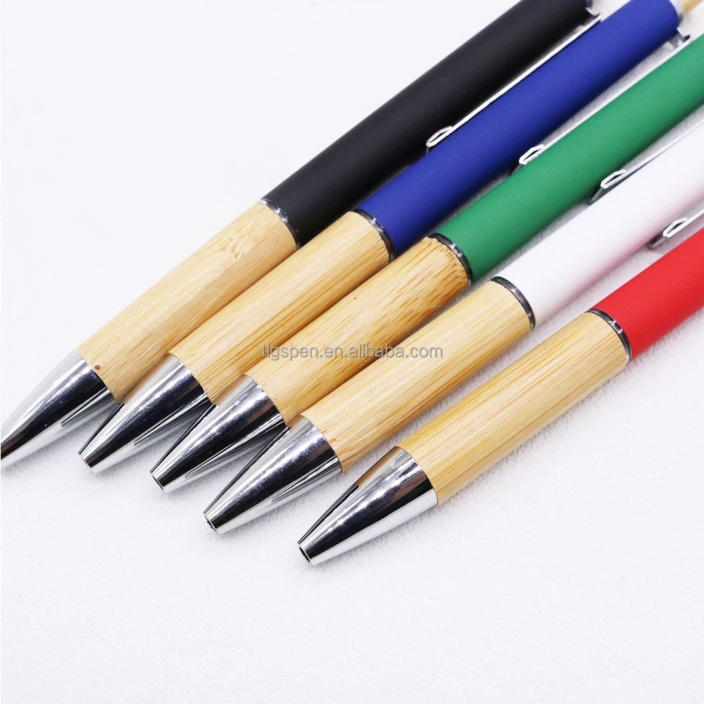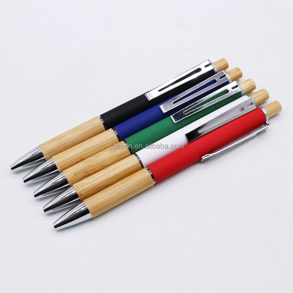 Eco Friendly Ballpoint Pen for Bamboo Body Metal Pen with Custom Laser Logo Low MOQ Advertising Pen