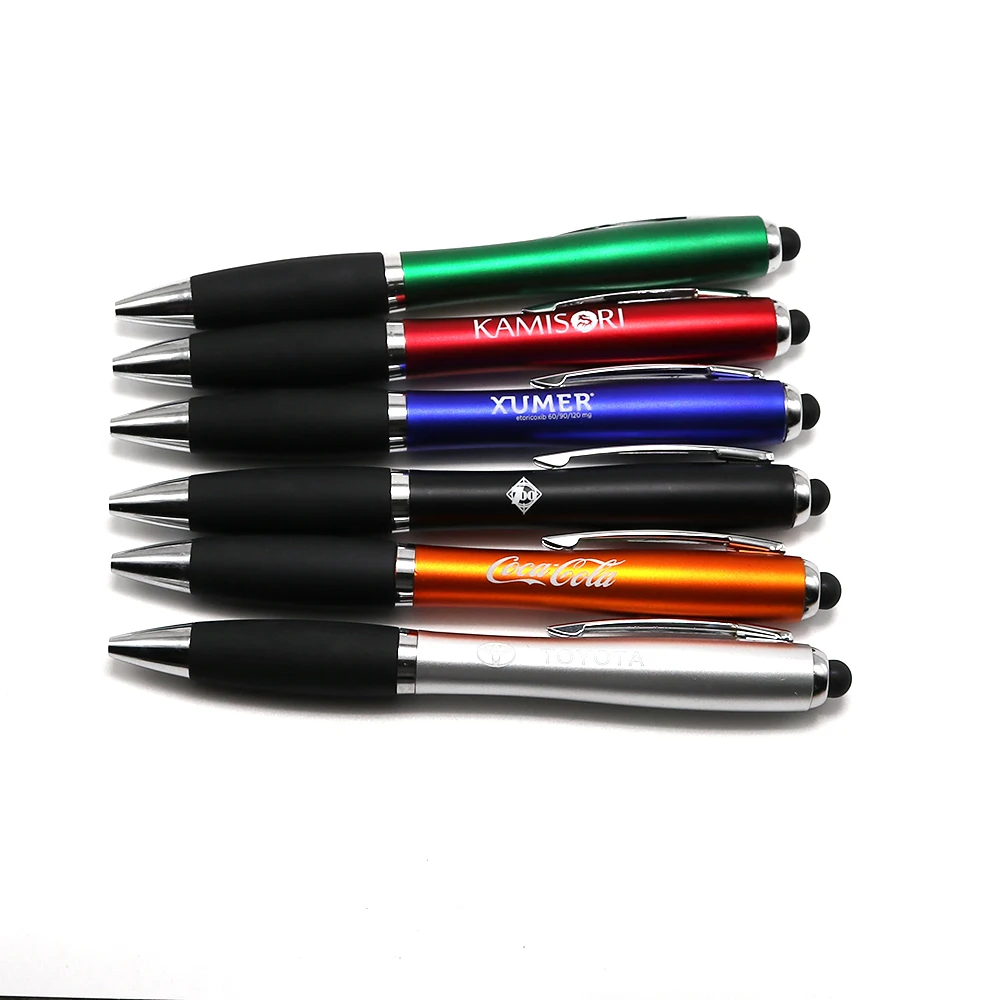 Wholesale Cheap Led Light up Pen With Stylus Custom Printing Laser Logo Plastic Ballpoint Ball Ink