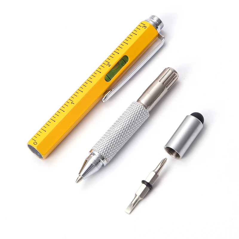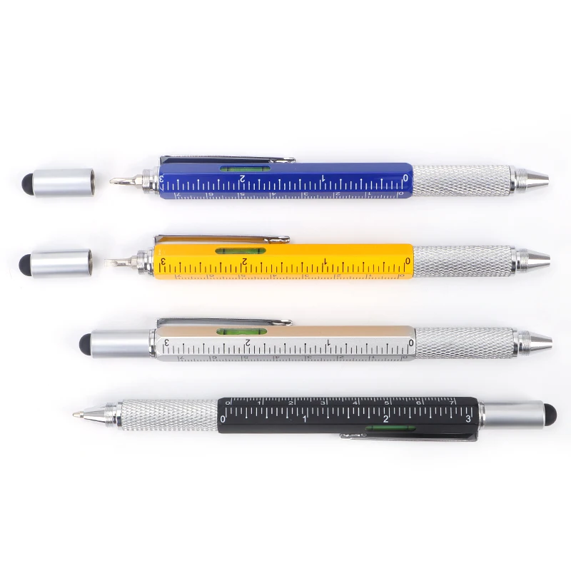 2026 Hot Selling 6 in 1 Top Touch Ball Pen with Level and Screwdriver Level Measure Ruler Multi Function Tool Pen