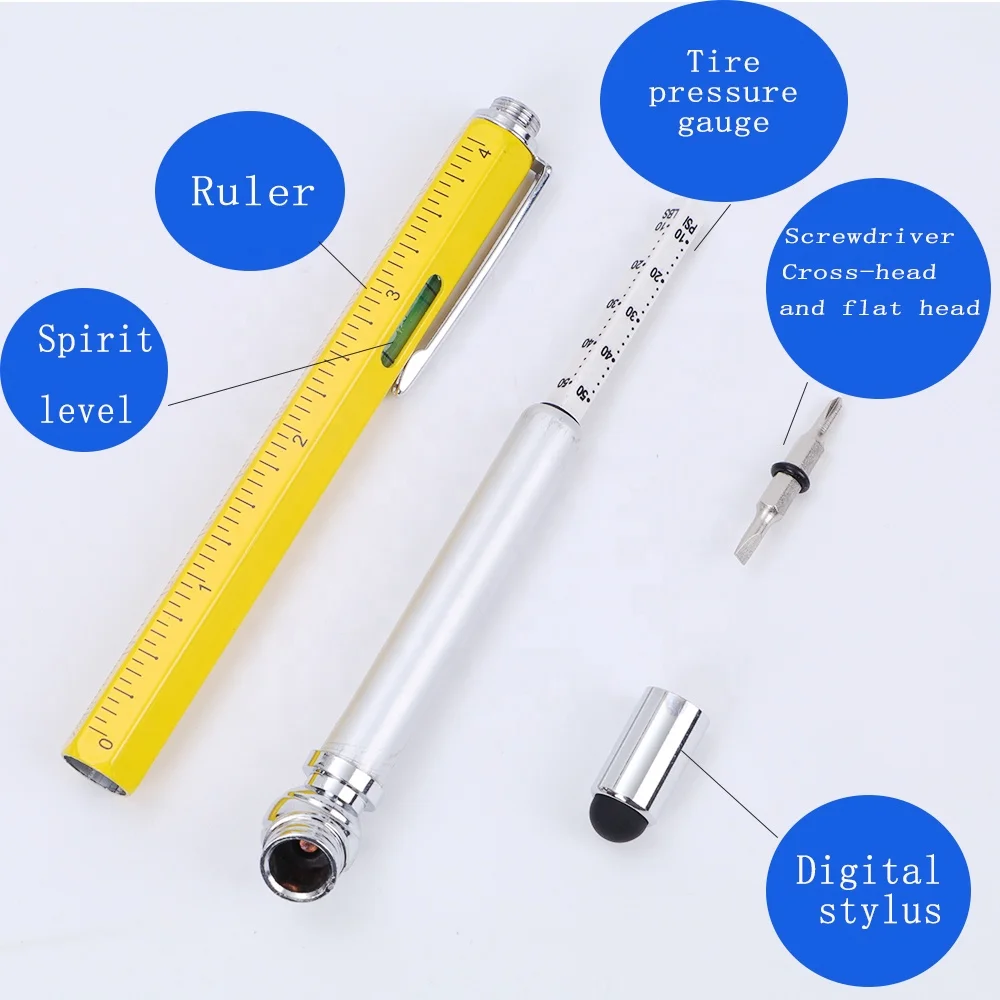 2026 Creative Tire Pressure Monitoring Pen Ruler Level Screwdriver Stylus Multi-function Engineering Tool Pen