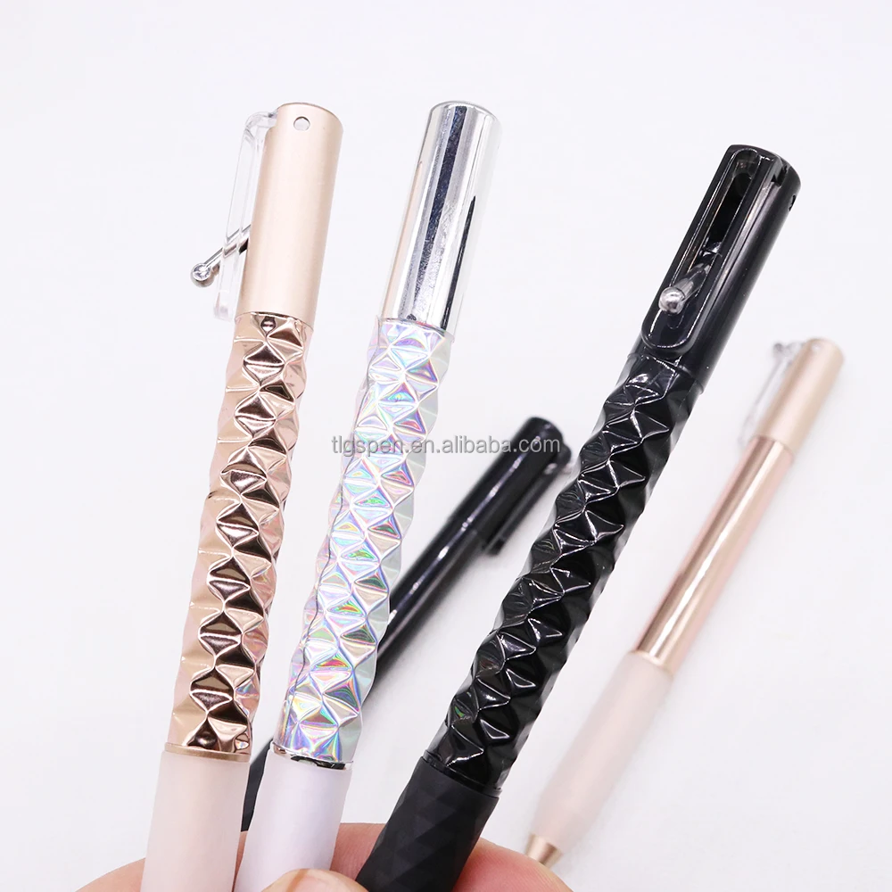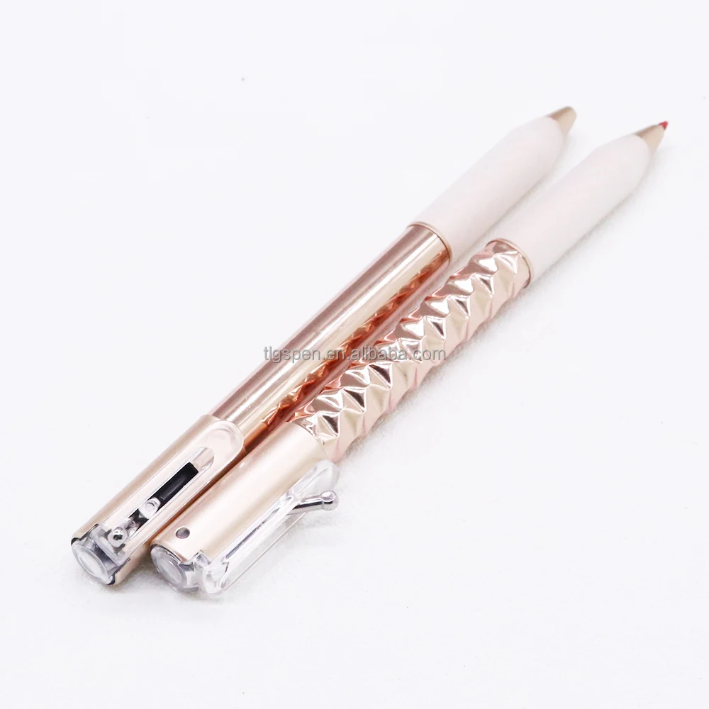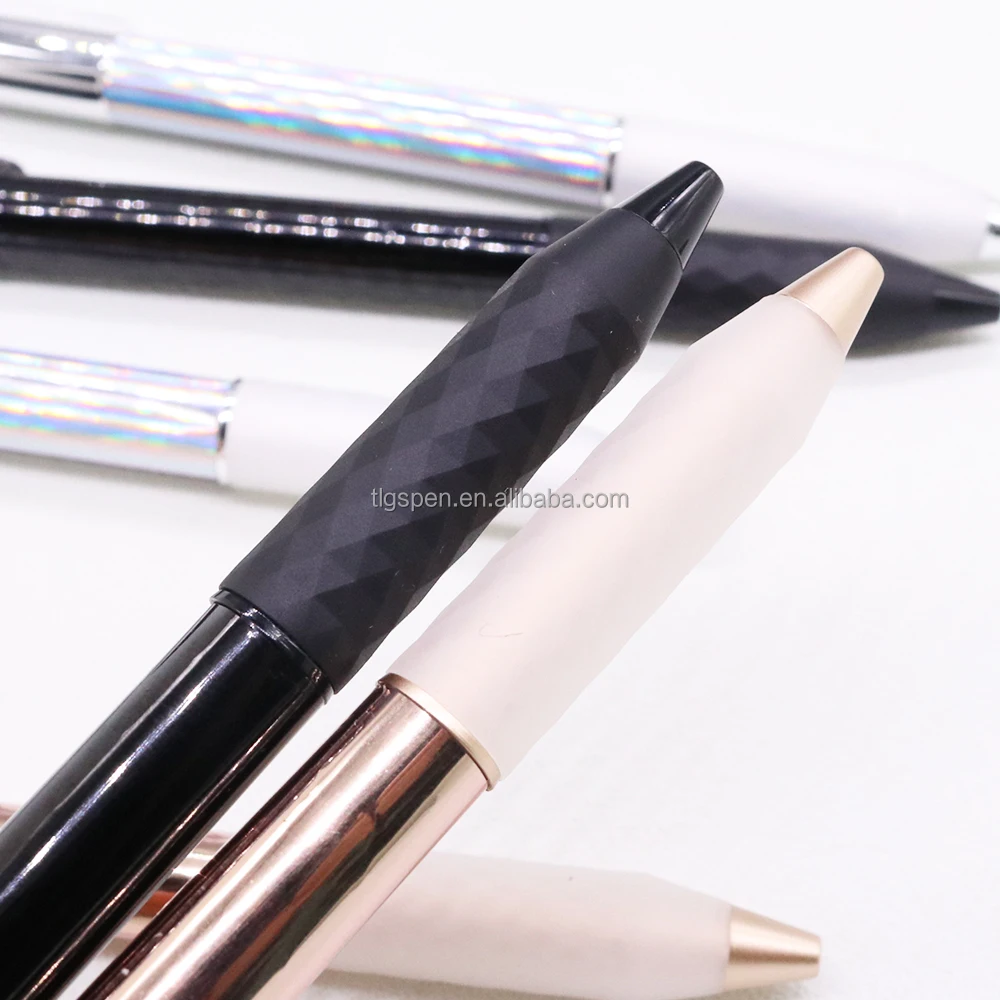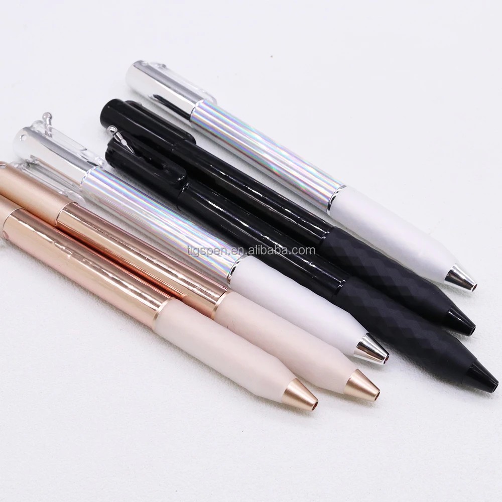 New Design Deformable Ball Pen with Decal Wrapped Rhomboid Barrel and Rubber Grip Side Push Action Pen