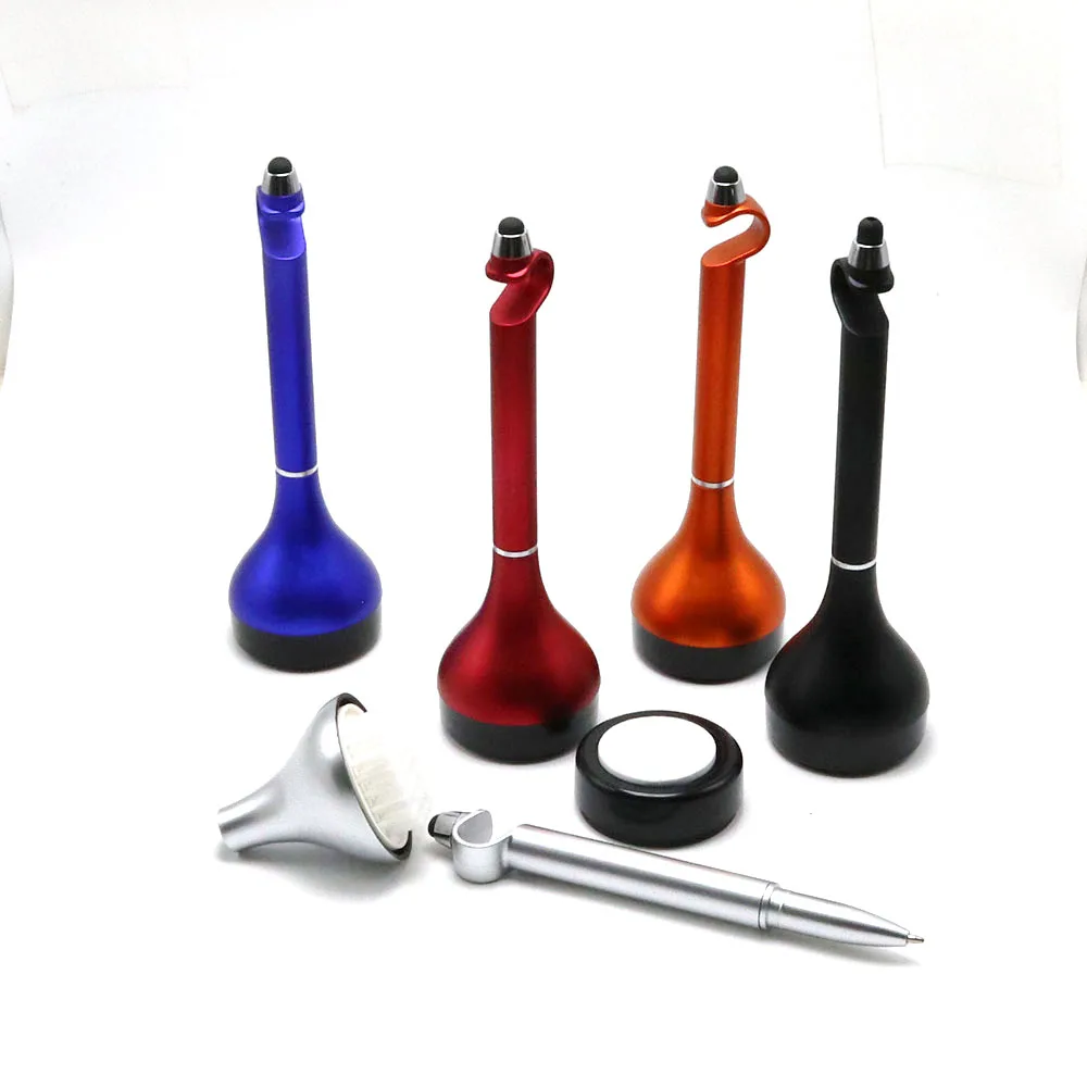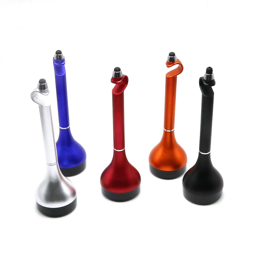 Promotional Multi Function 4 in 1 Desk Table Ball Pen Brush Pen with Phone Holder Stylus Ball Point Pen