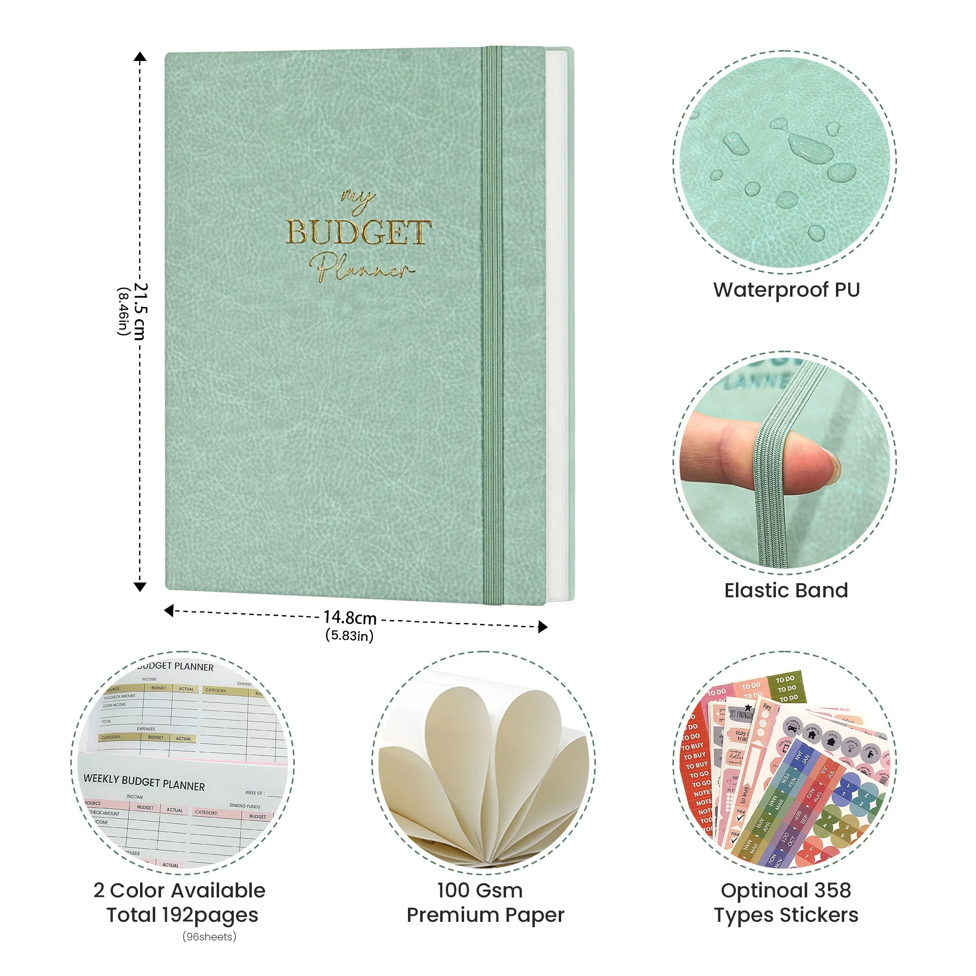Exclusive Personal Finance Organizer Pu Leather Journal Hard Cover Yearly Bill tracker Save Money Budget Planner with Sticker