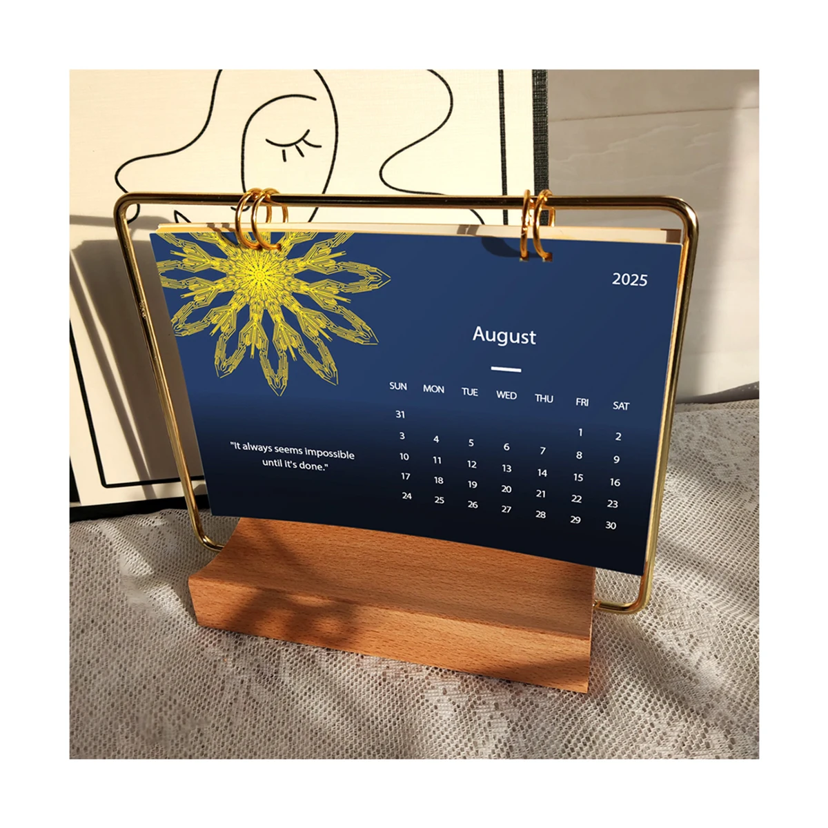 New Arrival Wooden Desk Calendar 2026 Yearly Monthly Planner Printing Office Supply Desktop Calendar with Inspiration Quotes