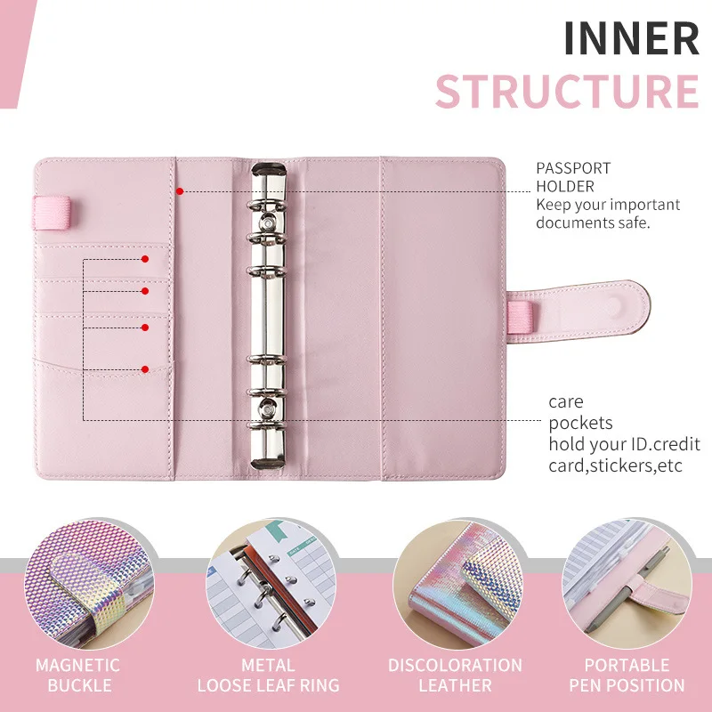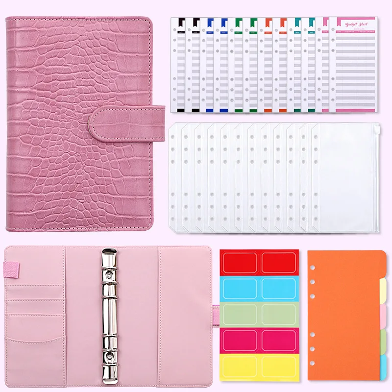 Custom for Girl A5 A6 PU Leather Money Organizer Cash Loose Leaf Pink Planner Notebook Budget Binder Planner with Cash Envelopes