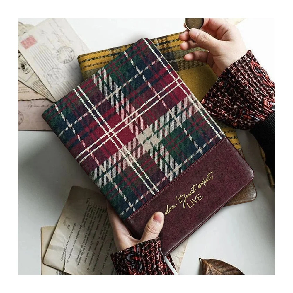 Promotional Custom logo Tartan Cloth Notebook B5 A5 A6 Hardcover Journal PU Leather Splice Fabric Dairy Luxury Gift for Women