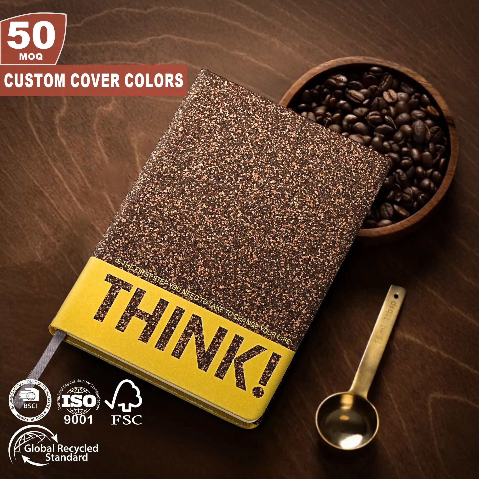 New Arrival Custom Coffee Grounds Notebook A5 Tea Residue Print Recycled Cover Undated Daily Weekly Planner Diary With FSC Paper