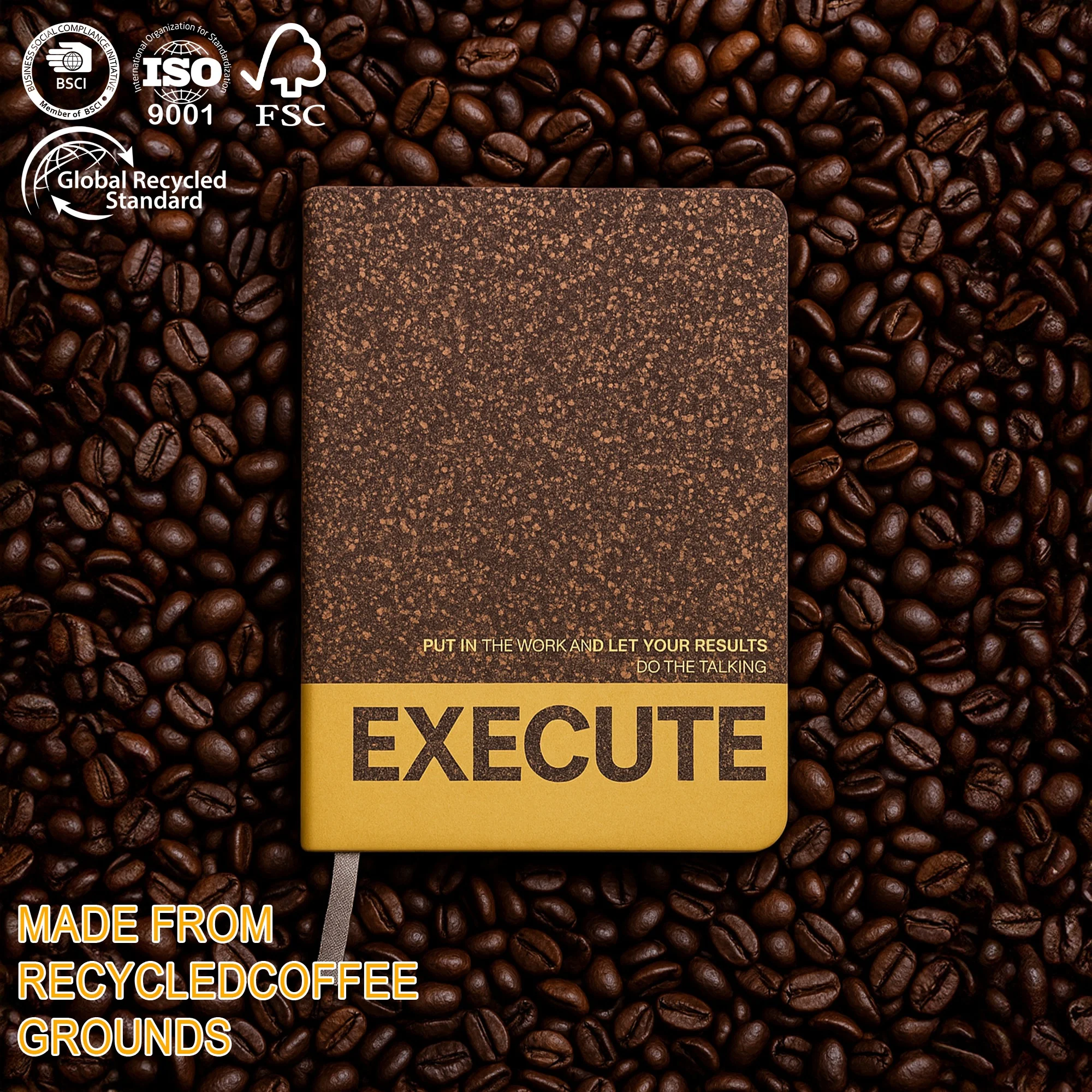 Eco-Friendly Cork Coffee Grounds Notebook School A5 Wholesale Custom Logo Notepad Promotion Diary Business Gift Budget Planner
