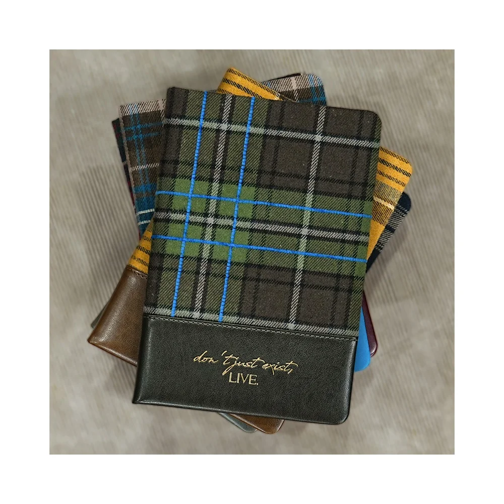 Custom A6/A4/A5 Cute Planner Portable Handmade Business Gift Hardcover Plaid Fabric PU Leather Thread Sewn Diary Notebook