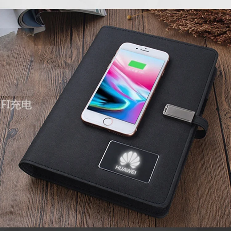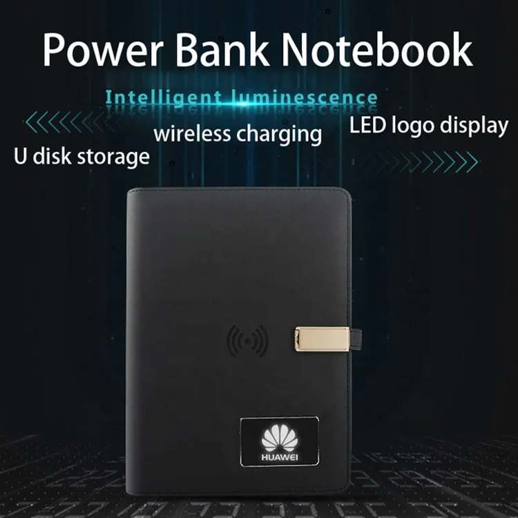 Wholesale Custom A5 PU Leather Journal Agenda Notebook with LED Display Hide Flashdrive Metal Buckle 16GB USB Powerbank