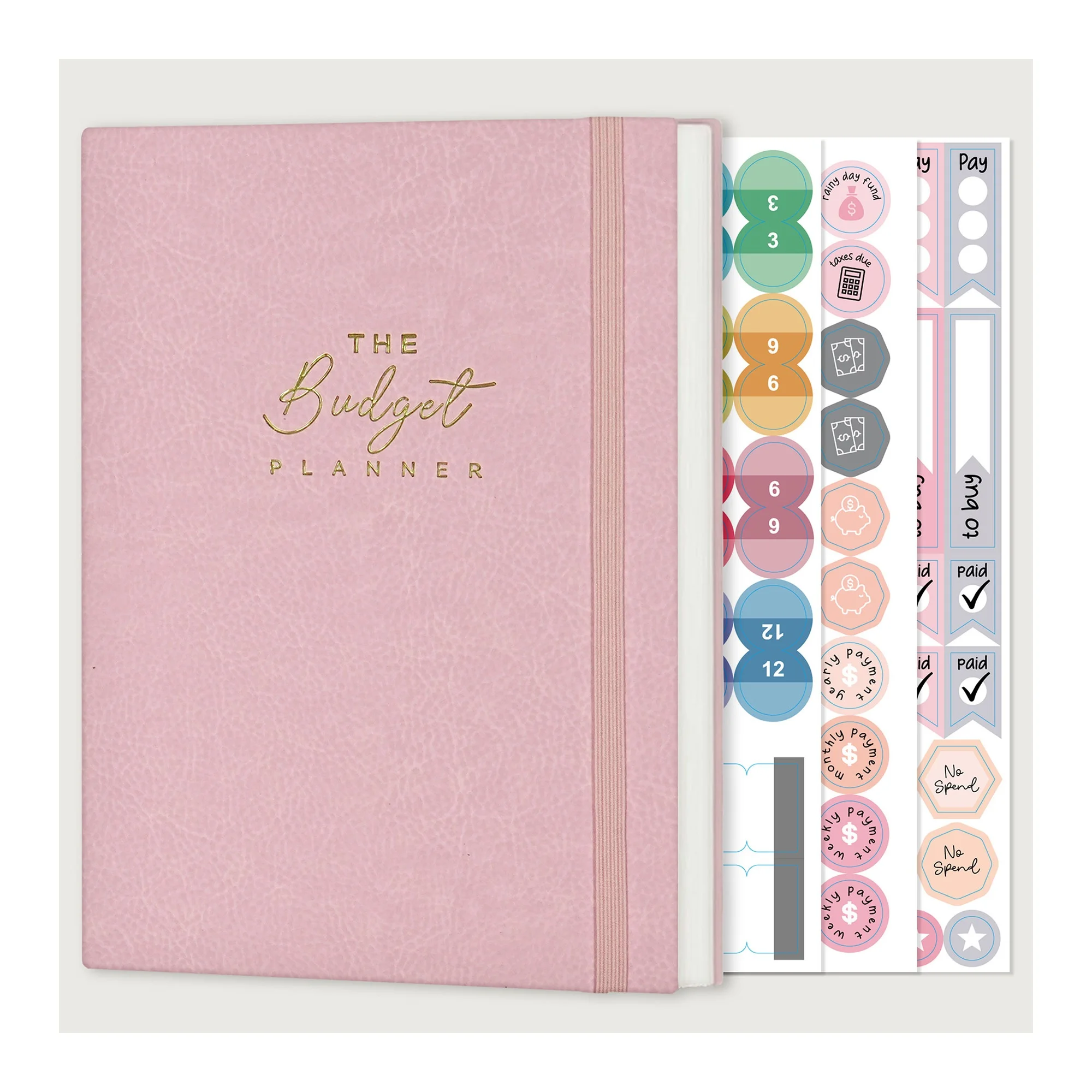Free Sample Custom Hardcover Notebook Financial Envelope Stickers A5 Undated Weekly Plans PU Leather Budget Planner for Business