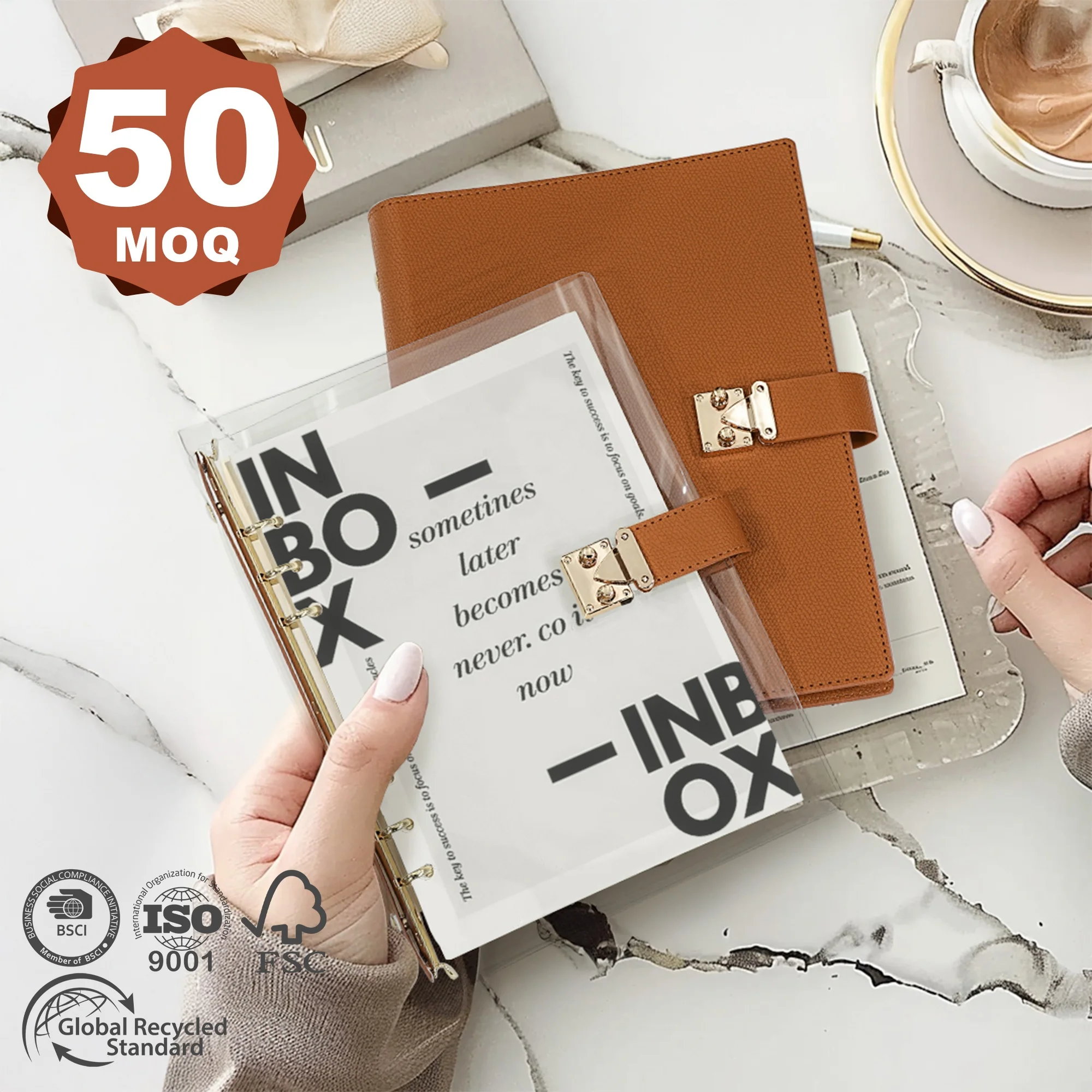 Eco-Friendly Clear PVC Transparent Planner PU Leather Journal Wholesale Custom Logo Refillable A5 Journal Ring Binder Notebook