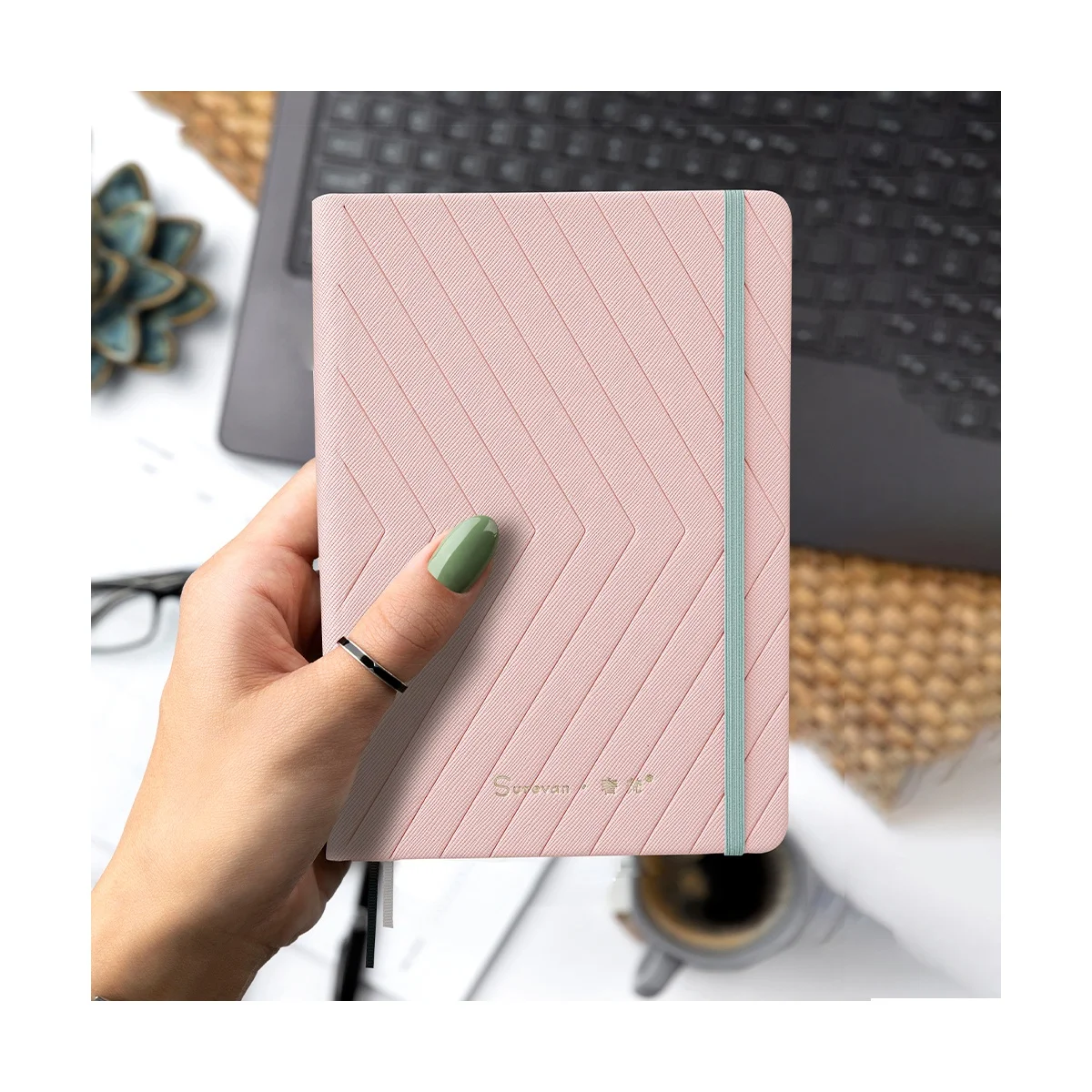 Free Sample Pink Notebook Cute Customized Hardcover A5 A6 PU Leather Journal School Girl Lines Dots Diary Elastic Band Notepad