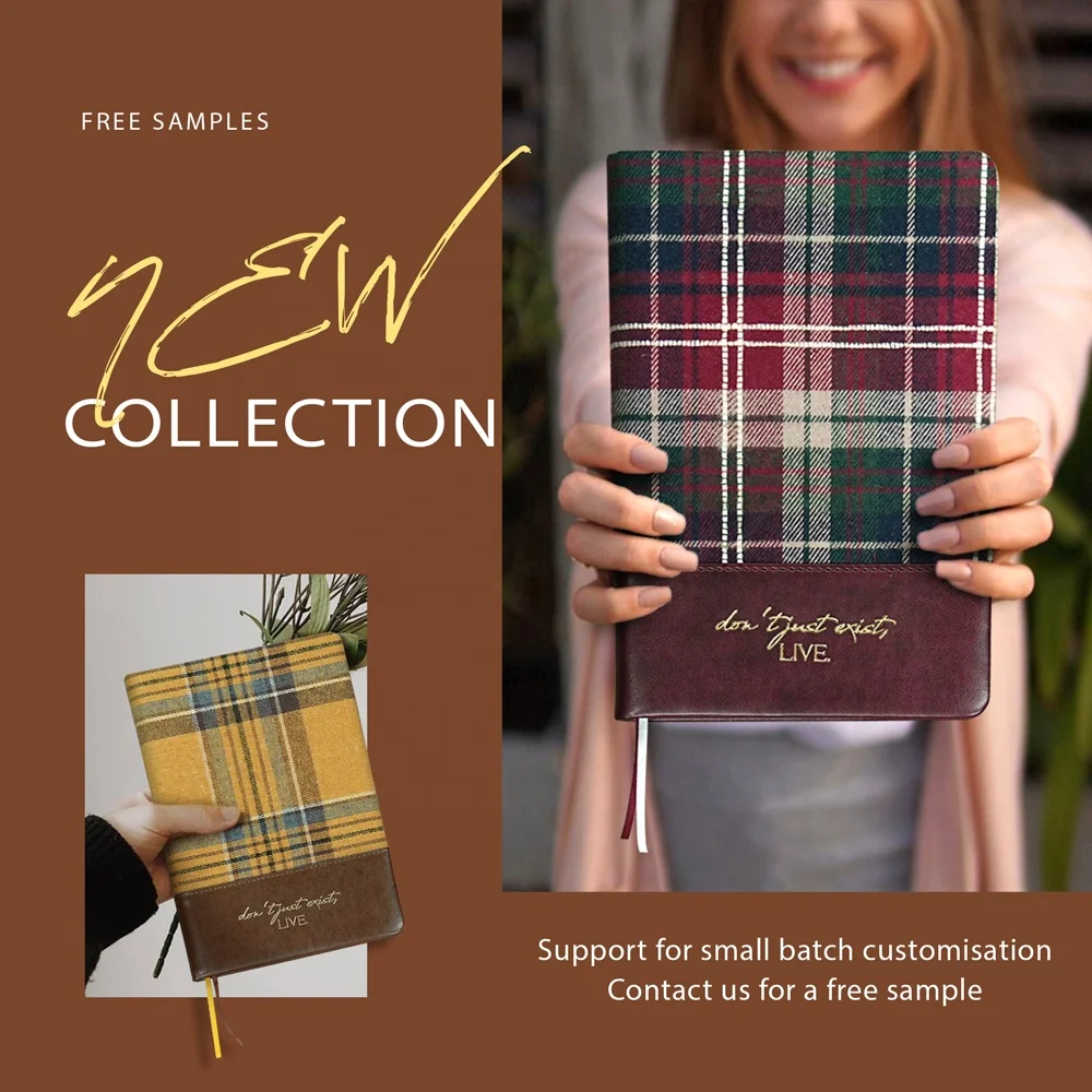 New Arrival Plaid Notebook A6 A5 B5 A4 Pu Leather Journal Tartan Custom Printing Diary Planner Notebooks for Christmas Present