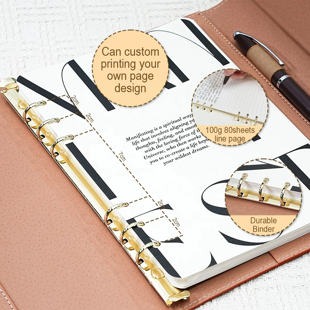 Notebook A7 Custom Logo High Quality PU Leather OEM Journal Standard Version Wholesale Office Supplies Diary Ring Binder Planner