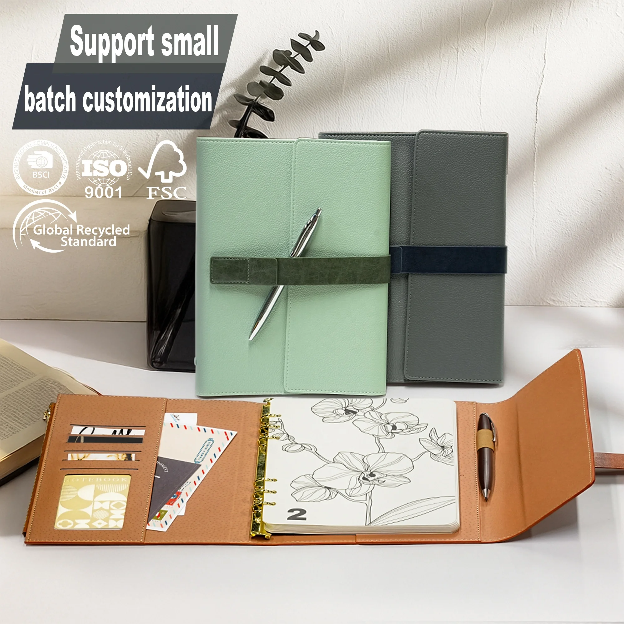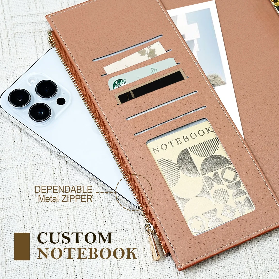 Notebook Custom Logo NFC Chip A5 Luxury Journal High Quality PU Leather OEM Zipper Pocket Wholesale Diary Ring Binder Planner